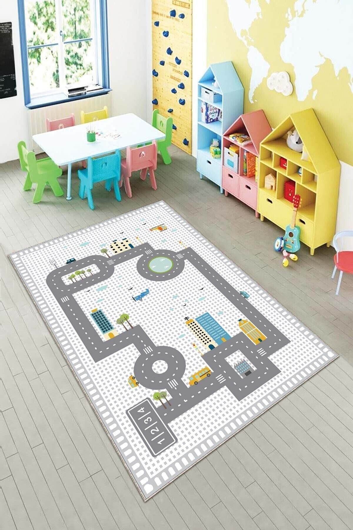 Gri Pist ve Uçak Desenli Yıkanabilir Kaymaz Taban Leke Tutmaz Bebek ve Çocuk Odası Halısı Gri Pist ve Uçak Desenli Yıkanabilir Kaymaz Taban Leke Tutmaz Bebek ve Çocuk Odası Halısı AYCKID11 160 x 230