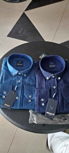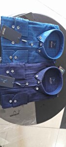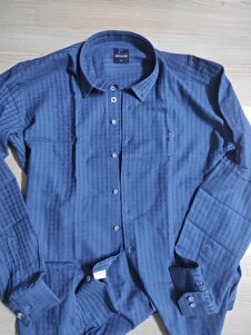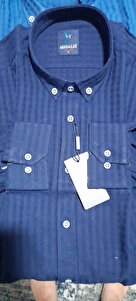 Erkek Slim Fit Lacivert Önü Patlı Kendinden Desenli Gömlek Erkek Slim Fit Lacivert Önü Patlı Kendinden Desenli Gömlek MGLD-PATLI XL