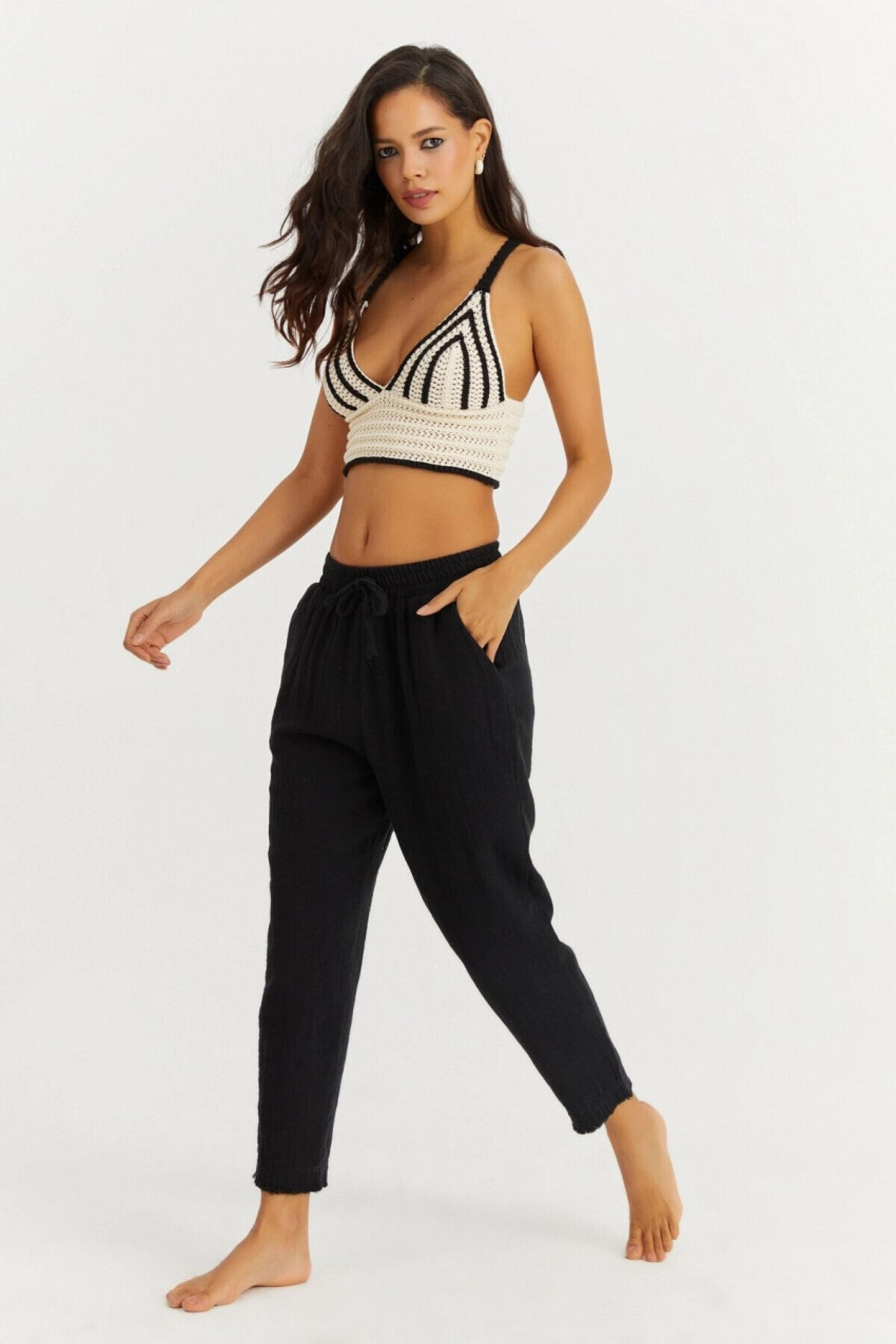 Kadın Siyah Beli Lastikli Muslin Pantolon İS3873 Kadın Siyah Beli Lastikli Muslin Pantolon İS3873 L