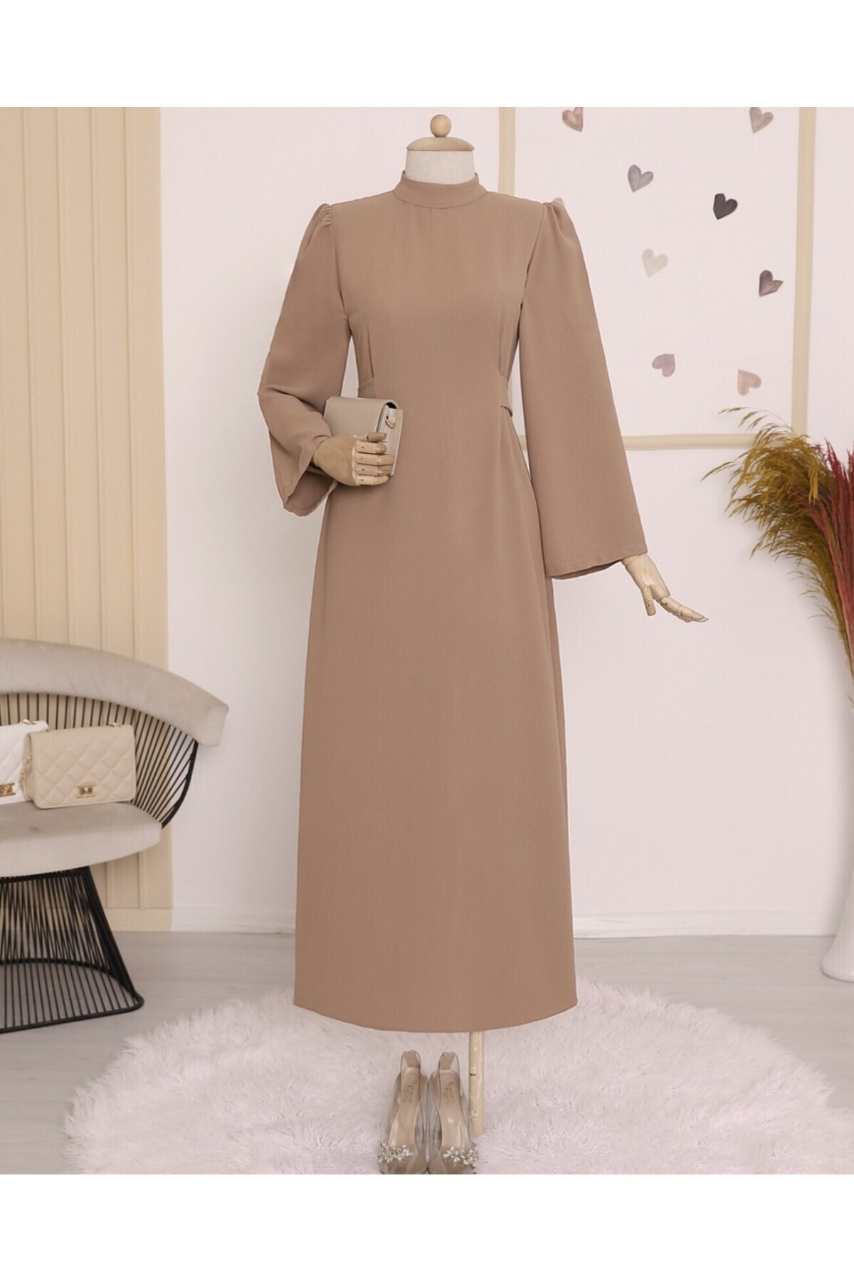 Hakim Yaka Belden Bağlamalı Elbise -Vizon Hakim Yaka Belden Bağlamalı Elbise -Vizon TY111-60835 44