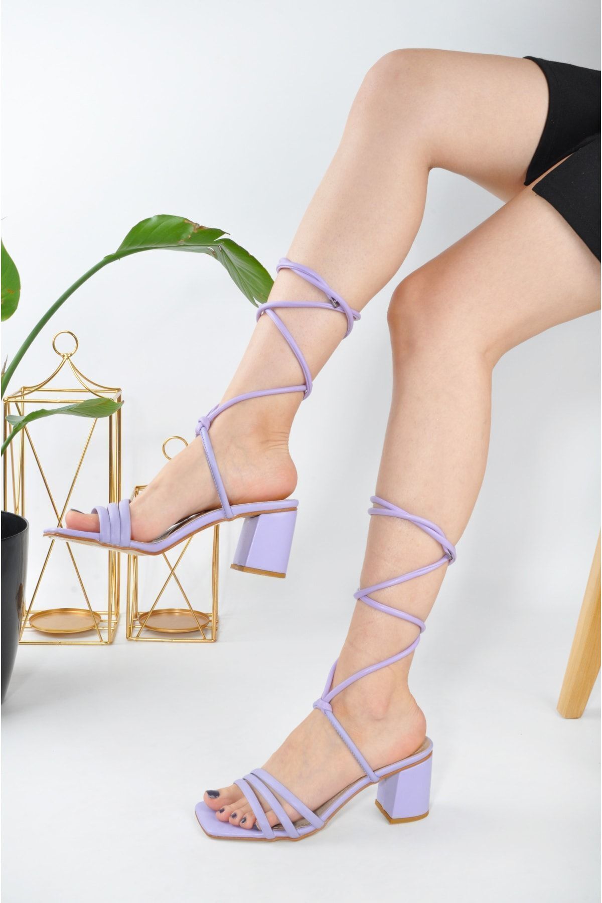 Kadın Lila Bağlamalı Topuklu Sandalet Kadın Lila Bağlamalı Topuklu Sandalet KAİ598586789 41