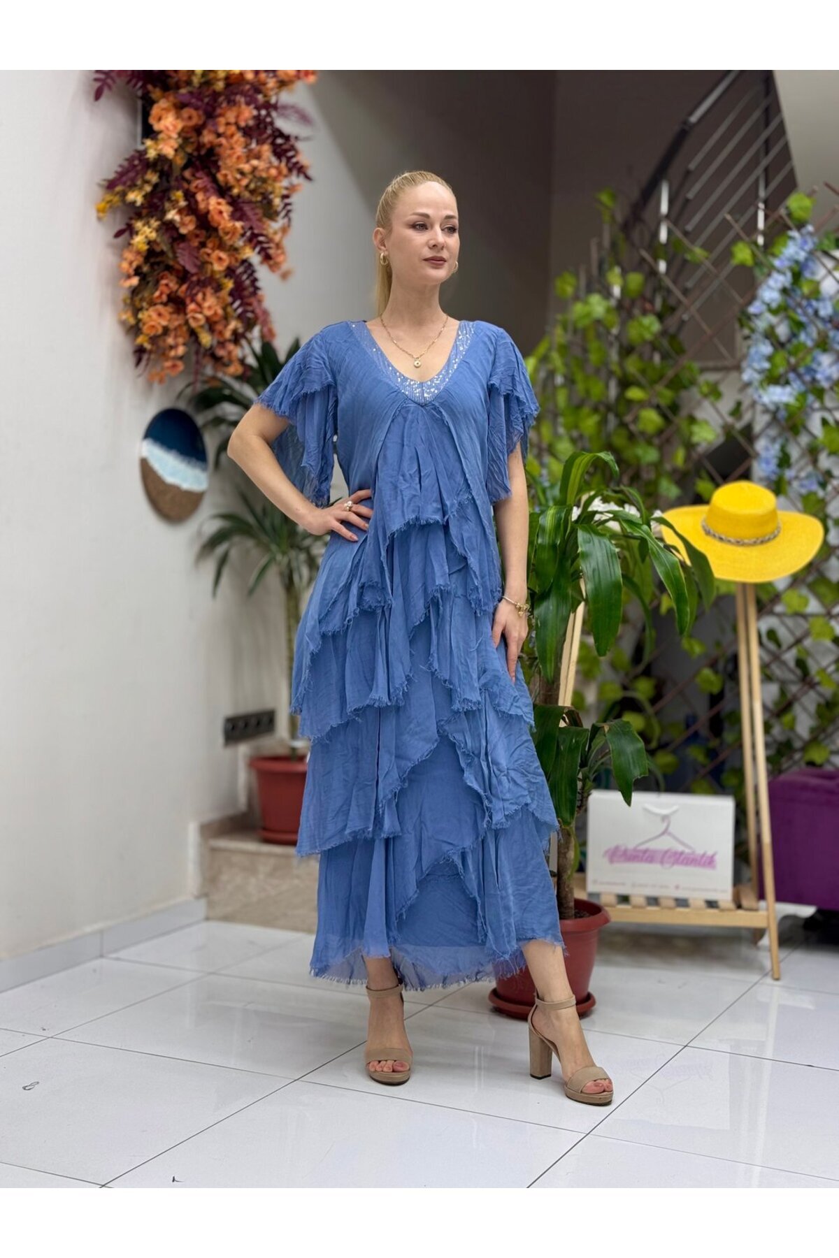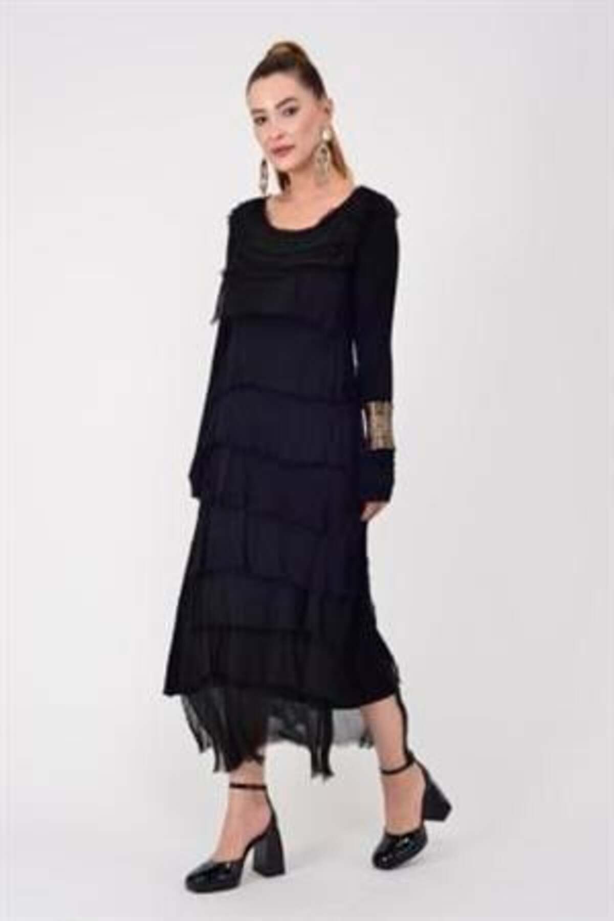 Italyan 2 beden İnce Gösteren Kat Kat Uzun Kol Taşlanmış İpek Elbise Italyan 2 beden İnce Gösteren Kat Kat Uzun Kol Taşlanmış İpek Elbise BHMSTLITL22EL1423 Standart