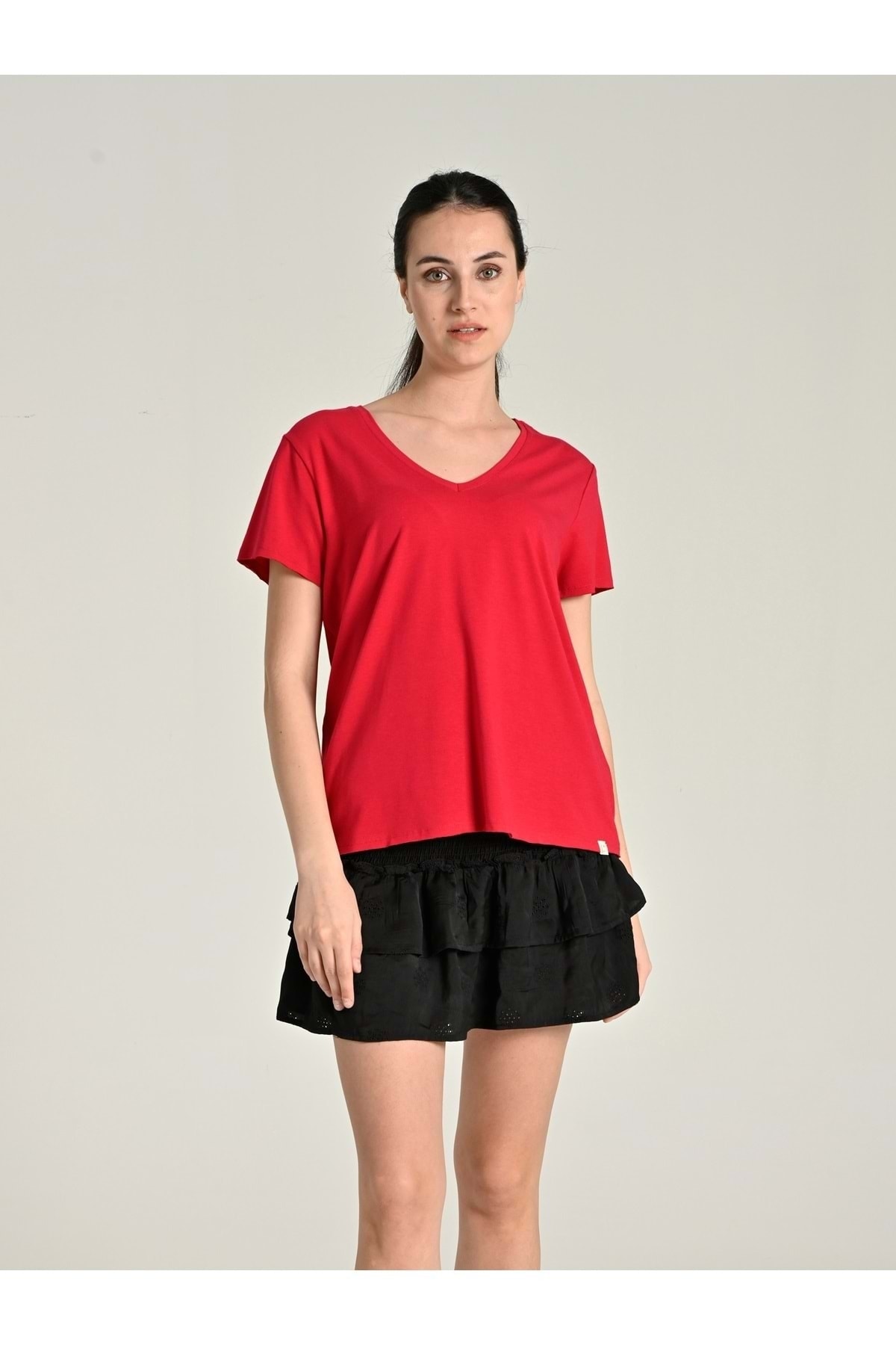 Kadın V Yaka Bambu Pamuk Basic Tişört Lila Kadın V Yaka Bambu Pamuk Basic Tişört Lila SIA-8 XL