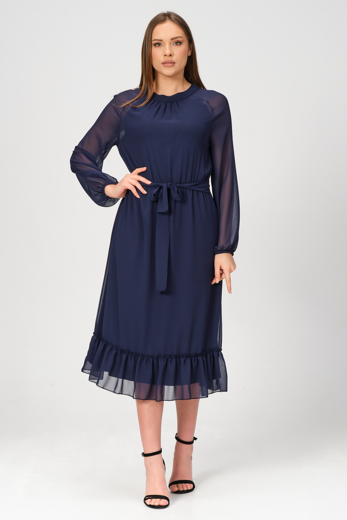 Astarlı Şık Şifon Elbise Astarlı Şık Şifon Elbise SHQ-70286 44