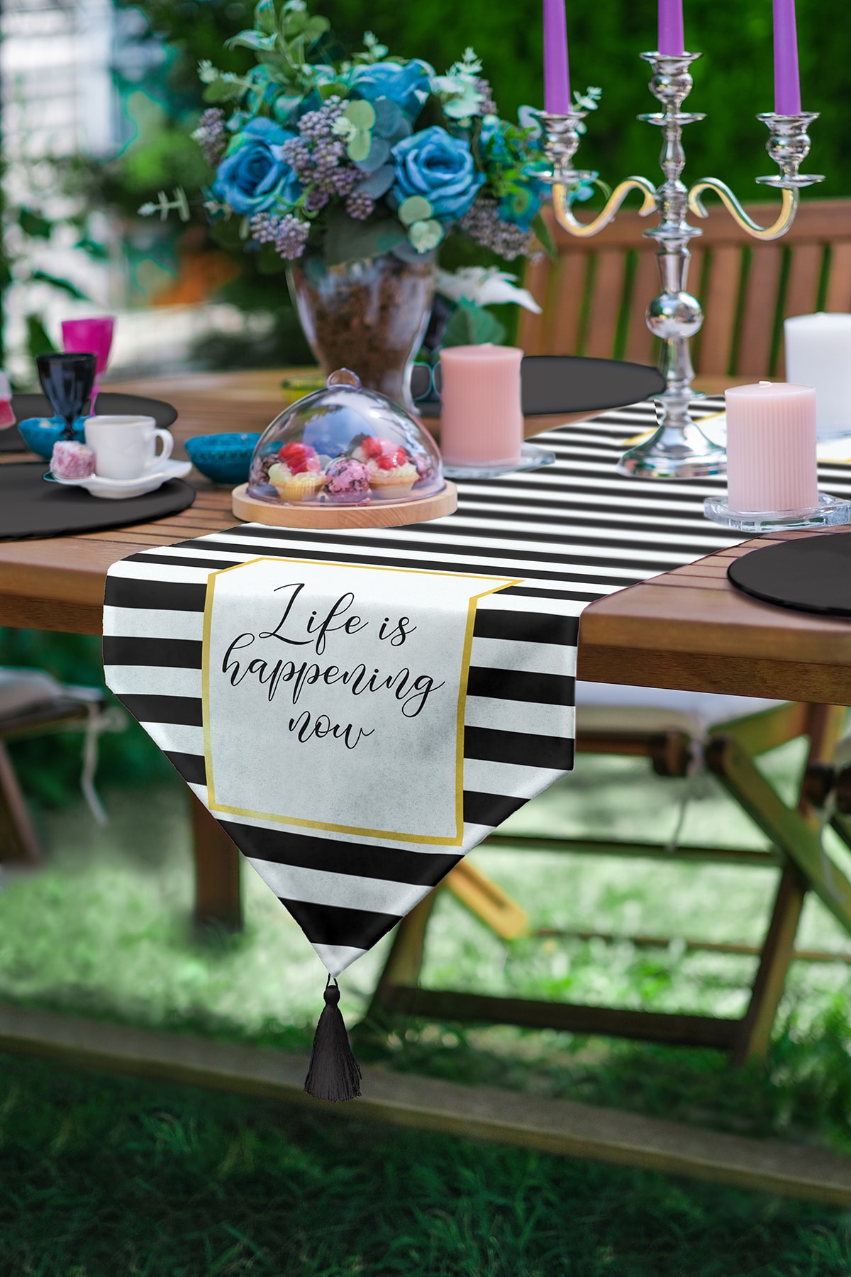 Siyah Beyaz Puantiye Desenli Dijital Baskılı Runner 140x40 Siyah Beyaz Puantiye Desenli Dijital Baskılı Runner 140x40 RUNNER-SET تک سایز