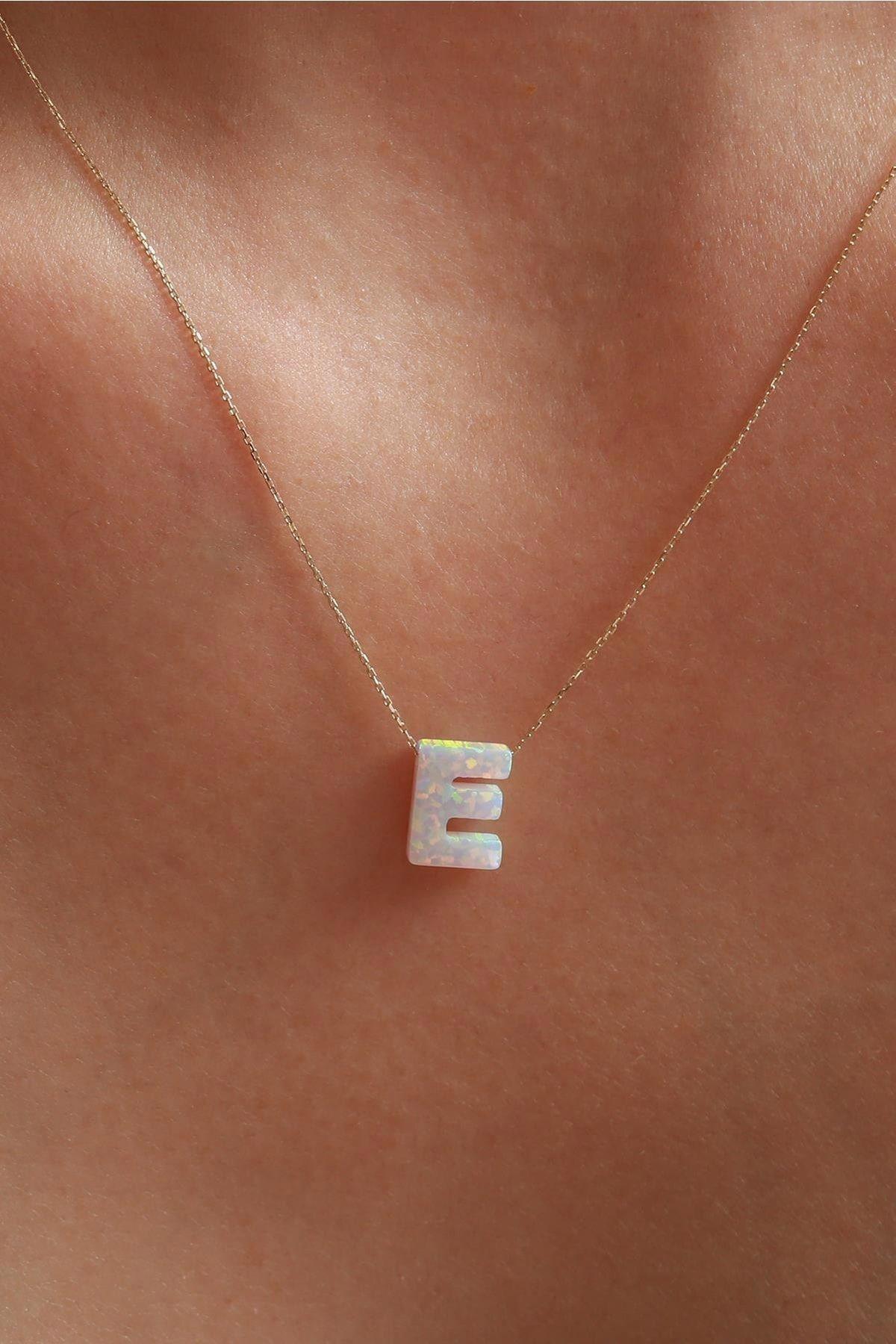 14 Ayar Altın E Harf Beyaz Opal Taşlı Kolye 14 Ayar Altın E Harf Beyaz Opal Taşlı Kolye KLYBYZOPLTSLEHRF 40 cm