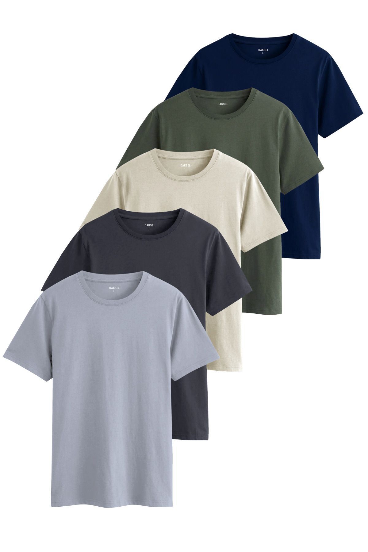 Erkek 5li Pamuklu Kısa Kollu Bisiklet Yaka Bol Tişört Erkek 5li Pamuklu Kısa Kollu Bisiklet Yaka Bol Tişört DKS5000 2XL