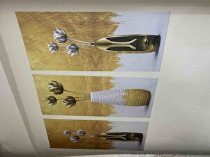 Statik Tutunma Özellikli 3'lü Gold Vazo 33-75 Statik Tutunma Özellikli 3'lü Gold Vazo 33-75 Sta 115 33 x 73