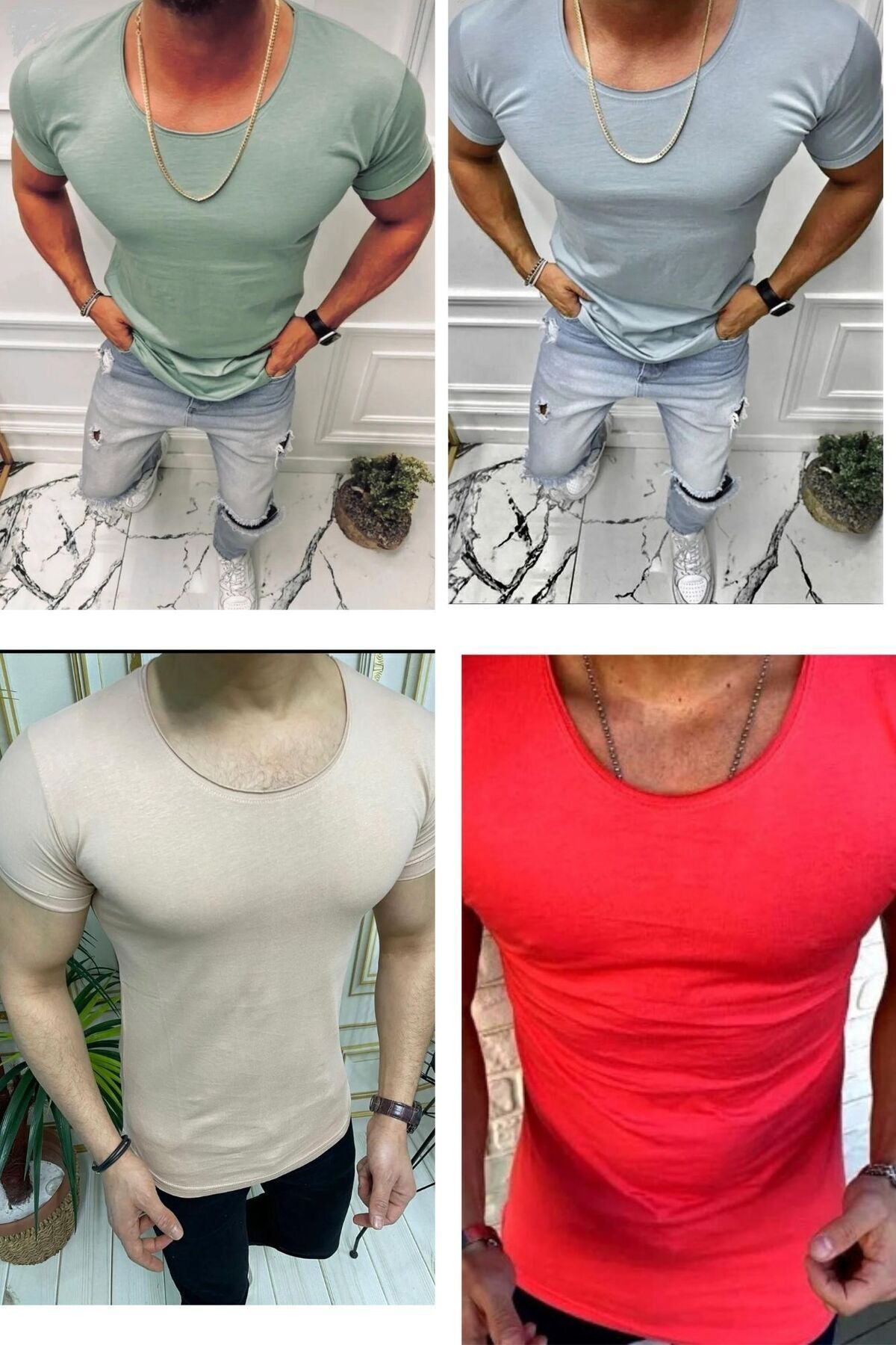 Erkek Oval Yaka Tişört Açık Yaka Likralı Slim Fit T-shirt Açık Gri Erkek Oval Yaka Tişört Açık Yaka Likralı Slim Fit T-shirt Açık Gri TYC00440429651 2XL