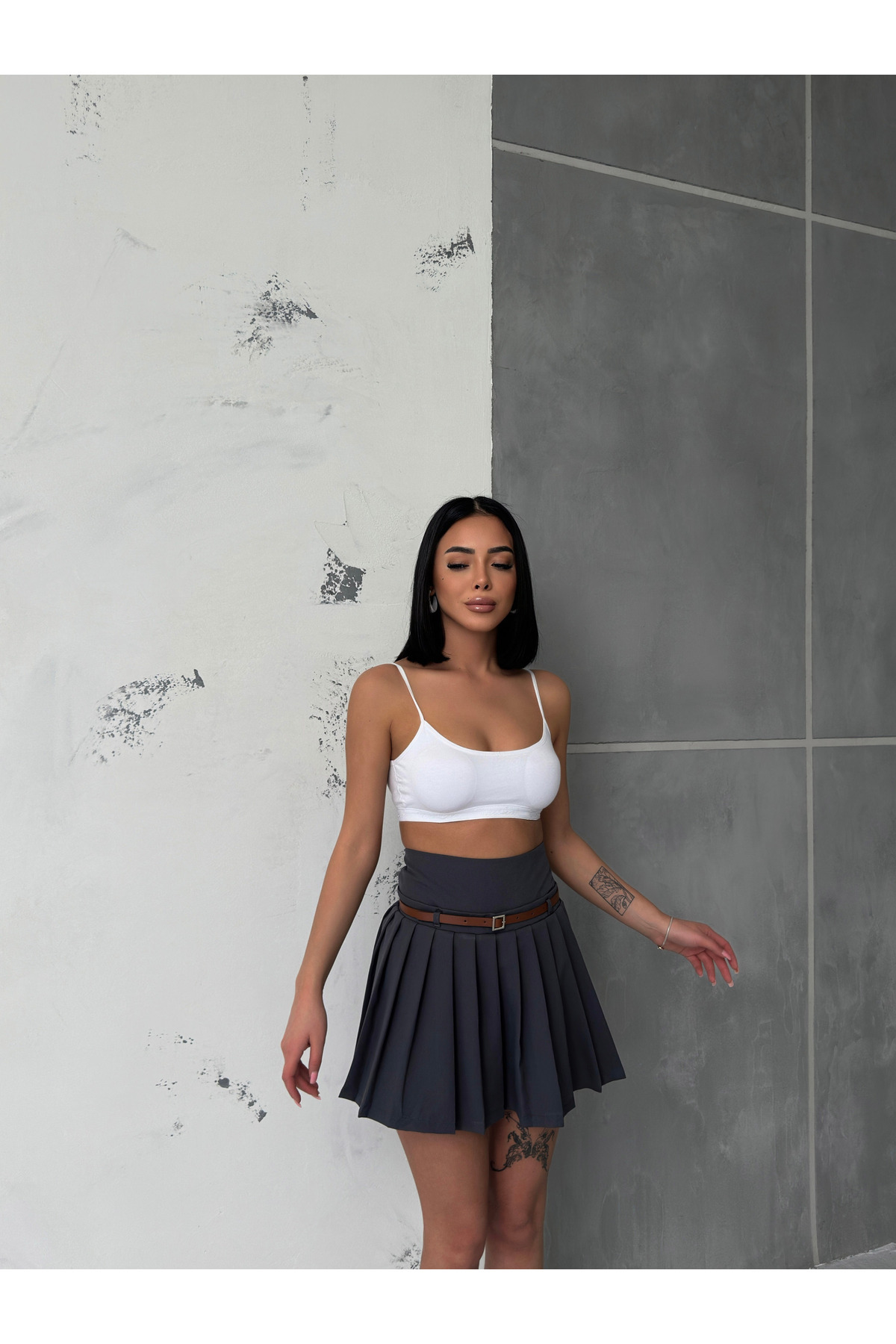 Beyaz – Arkası Fermuarlı Pileli Mini Etek Beyaz – Arkası Fermuarlı Pileli Mini Etek 22Y012206 L