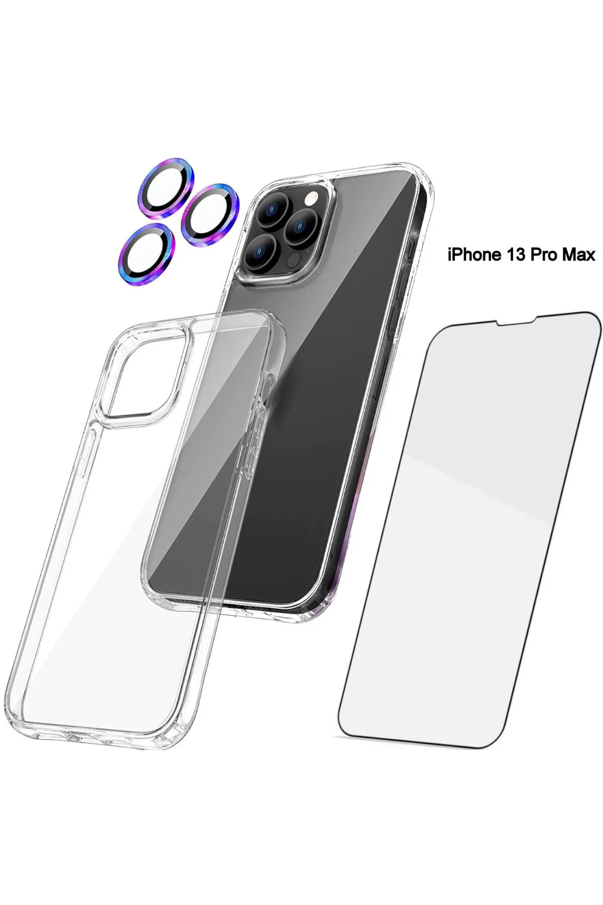 Iphone 13 Pro Max Şeffaf Kılıf + Ekran Koruyucu + Kamera Koruyucu 360° Tam Koruma 3in1 Set - Siyah Iphone 13 Pro Max Şeffaf Kılıf + Ekran Koruyucu + Kamera Koruyucu 360° Tam Koruma 3in1 Set - Siyah HYPRA000114 تک سایز