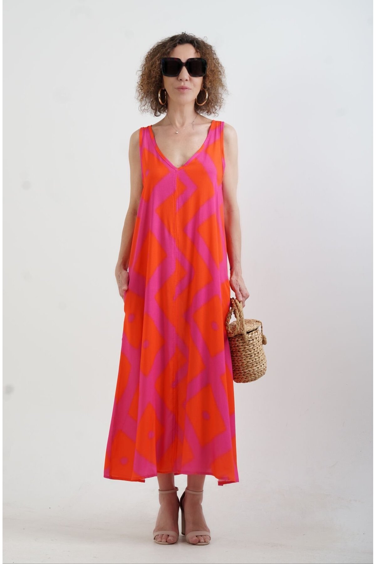 Fuşya Italyan Yarım Düğmeli Papatya Desenli Salaş Elbise Fuşya Italyan Yarım Düğmeli Papatya Desenli Salaş Elbise ITL22EL915P XL