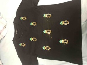 Kadın Siyah V Yaka Ananas Pul Payet Dikme Işlemeli Tişört Kadın Siyah V Yaka Ananas Pul Payet Dikme Işlemeli Tişört 038bndtto L