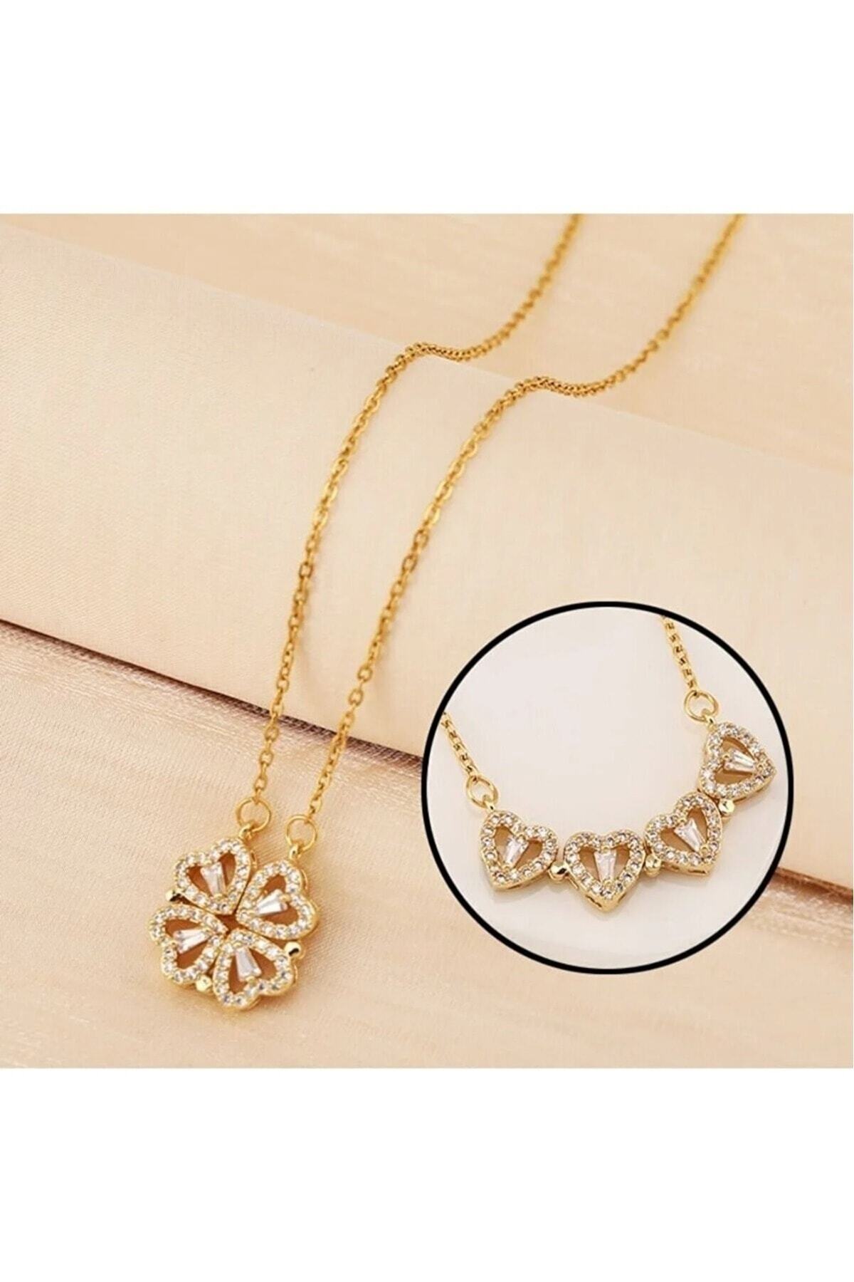 Çelik Zirkon Taşlı Çoklu Kalpli Açılır Kapanır Mıknatıslı Yonca Kolye Çelik Zirkon Taşlı Çoklu Kalpli Açılır Kapanır Mıknatıslı Yonca Kolye KKGLDYNC001 45 cm