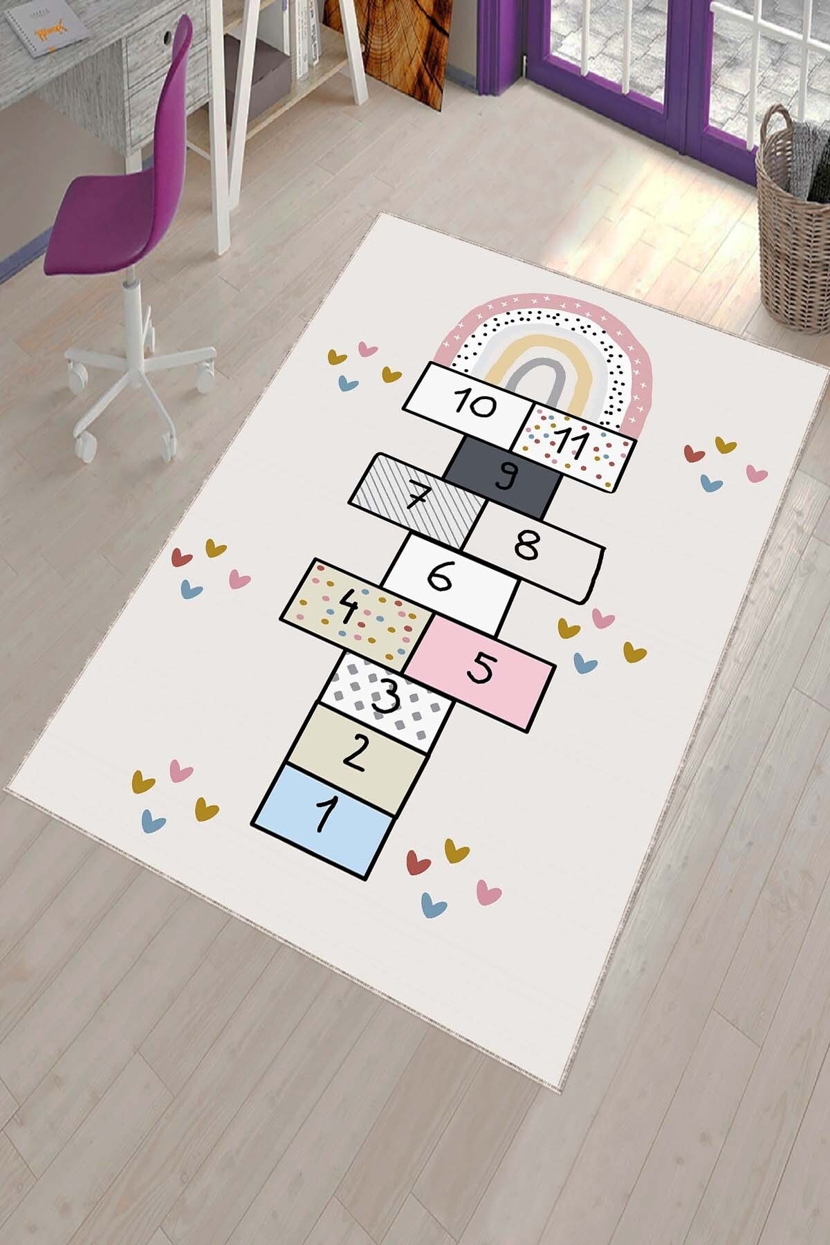 Kaymaz Tabanlı Makinede Yıkanabilen Filli Seksekli Çocuk Halısı Ar1140 Kaymaz Tabanlı Makinede Yıkanabilen Filli Seksekli Çocuk Halısı Ar1140 LZAR824 160 x 230