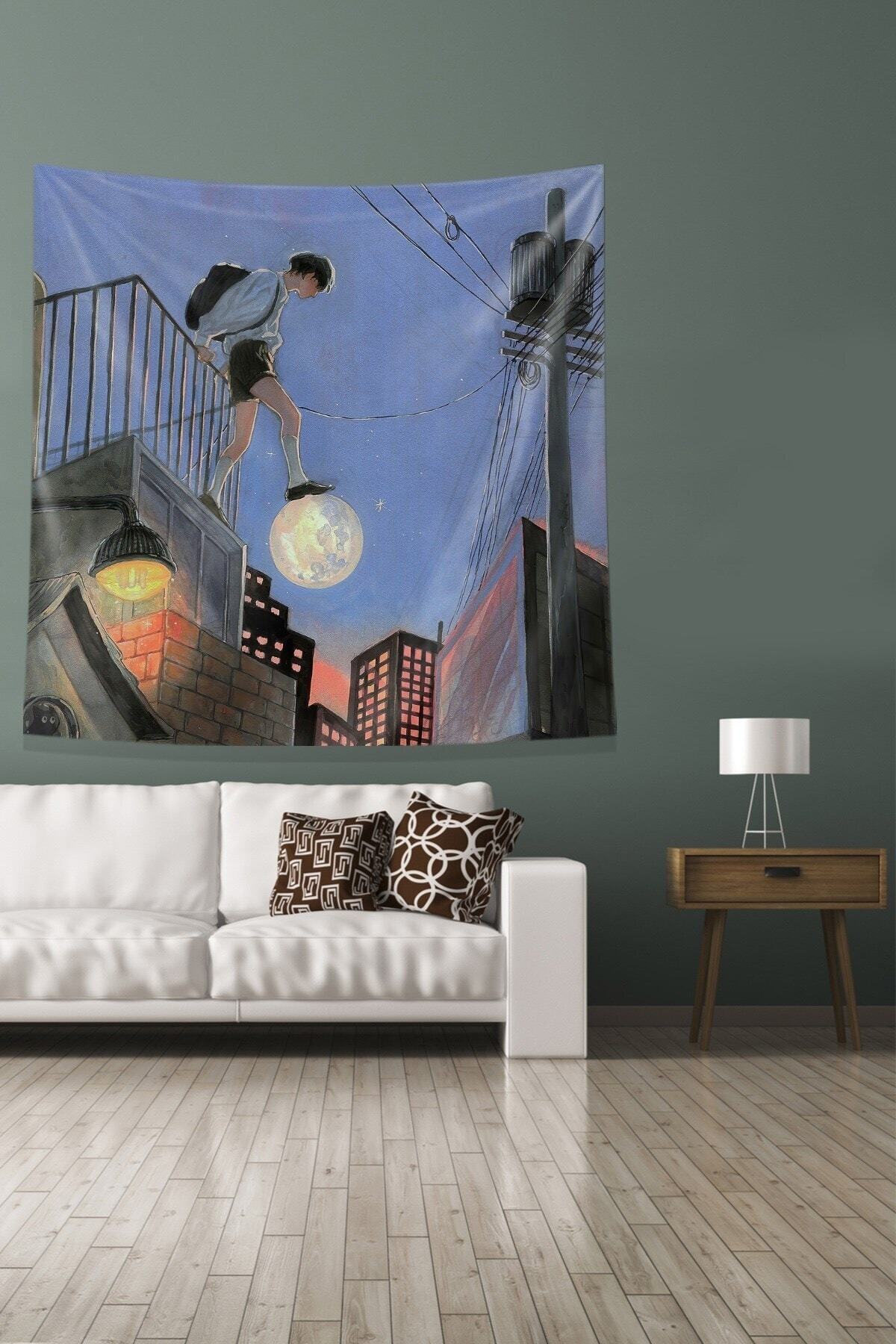 Multirenk Ayda Yürüyen Çocuk Leke Tutmaz Kadife Kumaş Duvar Örtüsü Duvar Halısı Tapestry Multirenk Ayda Yürüyen Çocuk Leke Tutmaz Kadife Kumaş Duvar Örtüsü Duvar Halısı Tapestry WLLROT11 140 x 140