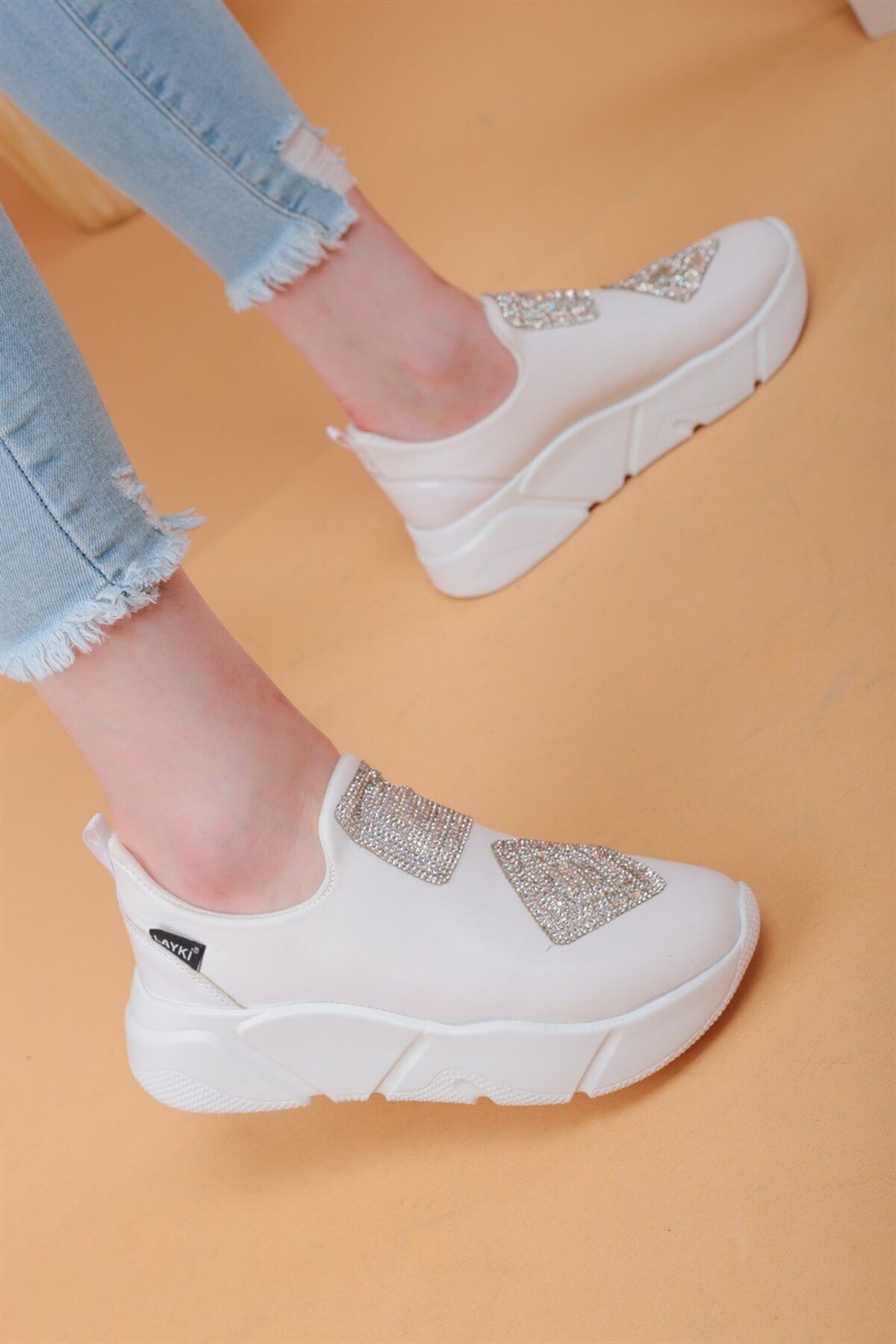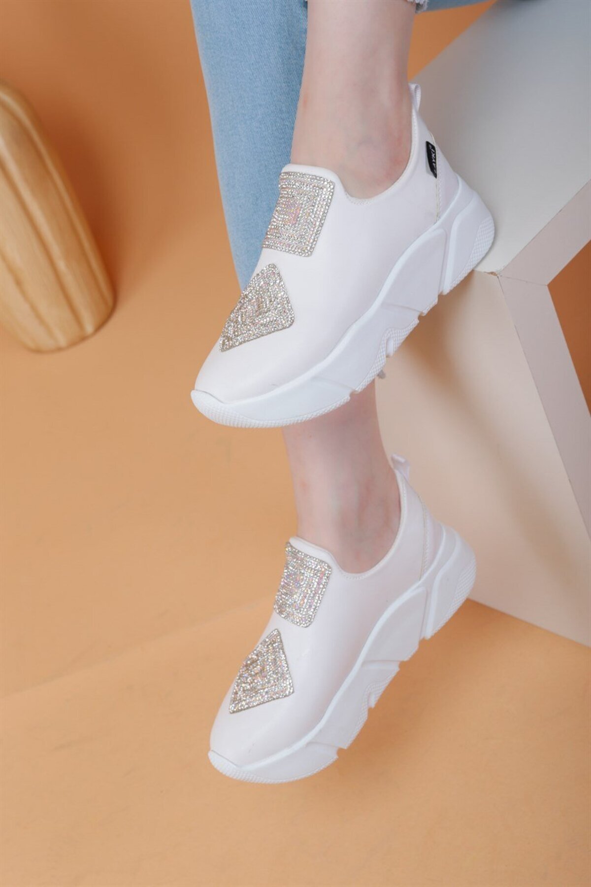İmmobile Beyaz Renkli Önü Parlak Taşlı Paraşüt Kumaş Lux Kadın Spor Ayakkabı İmmobile Beyaz Renkli Önü Parlak Taşlı Paraşüt Kumaş Lux Kadın Spor Ayakkabı 002010490000002 42