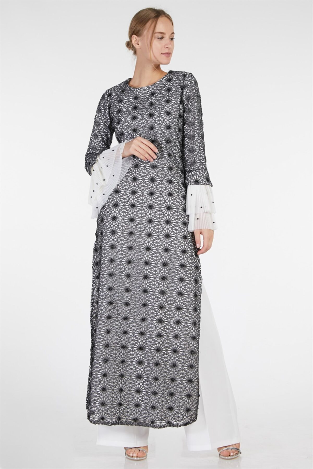 Atkı Üzeri Ve Yırtmaç Kenarı Taş Işli Pantolonlu Şık Takım Kırmızı Atkı Üzeri Ve Yırtmaç Kenarı Taş Işli Pantolonlu Şık Takım Kırmızı 2117145300 52