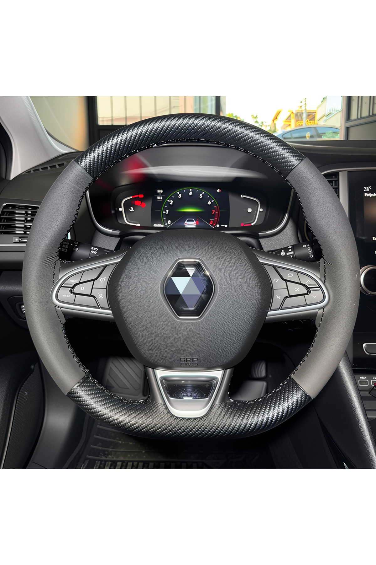 Renault Megane 4 Uyumlu Özel Kombin Süet Karbon Kırmızı Yüzüklü Dikmeli Deri Direksiyon Kılıfı Renault Megane 4 Uyumlu Özel Kombin Süet Karbon Kırmızı Yüzüklü Dikmeli Deri Direksiyon Kılıfı Mre121231 تک سایز