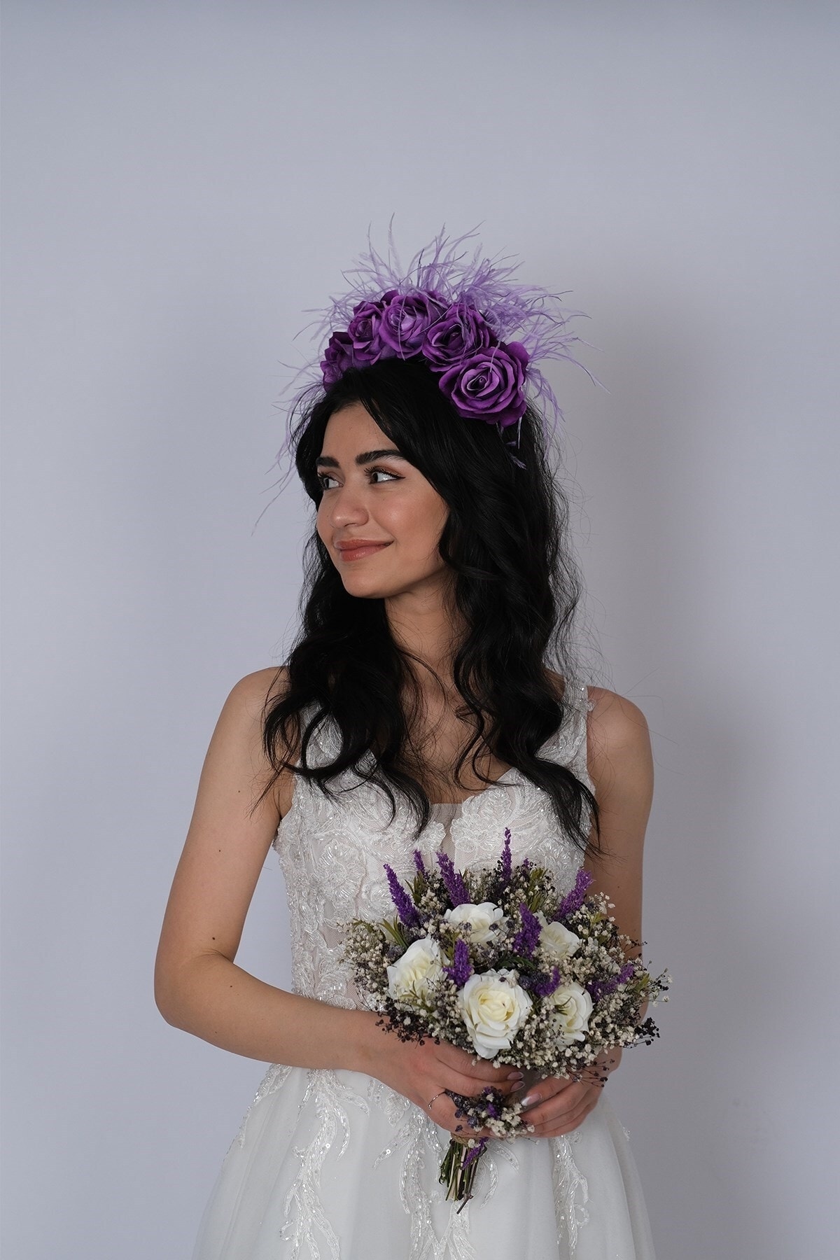Kadife Güllü Tüylü Tasarım Gelin Kına Tacı Kadife Güllü Tüylü Tasarım Gelin Kına Tacı TXCB57F6A957076 تک سایز