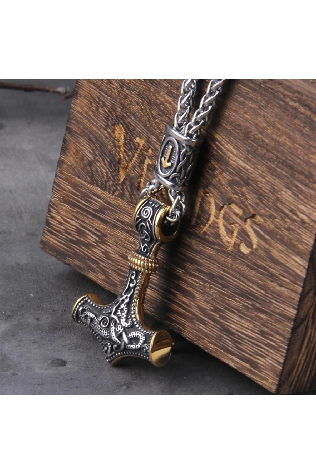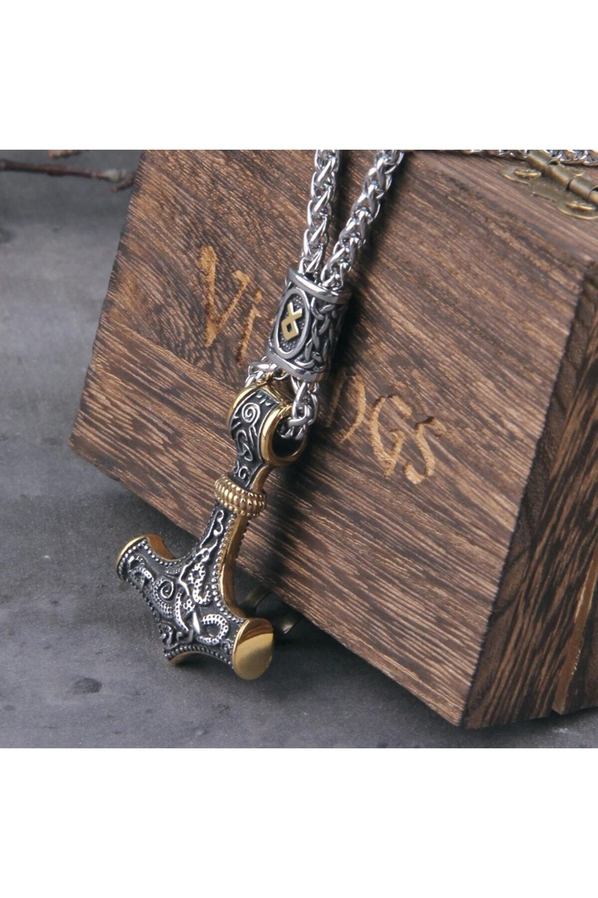 Thor Iskandinav Mjollnir Othila Işleme Aksesuarlı Örgü Zincir Gri 316l Erkek Çelik Kolye Thor Iskandinav Mjollnir Othila Işleme Aksesuarlı Örgü Zincir Gri 316l Erkek Çelik Kolye NSS00000865 70 cm