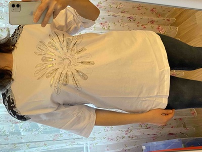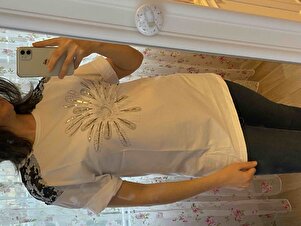 Kadın Omzu Pul Payet Işlemeli Pamuk Tişört Kadın Omzu Pul Payet Işlemeli Pamuk Tişört 065benedetto L