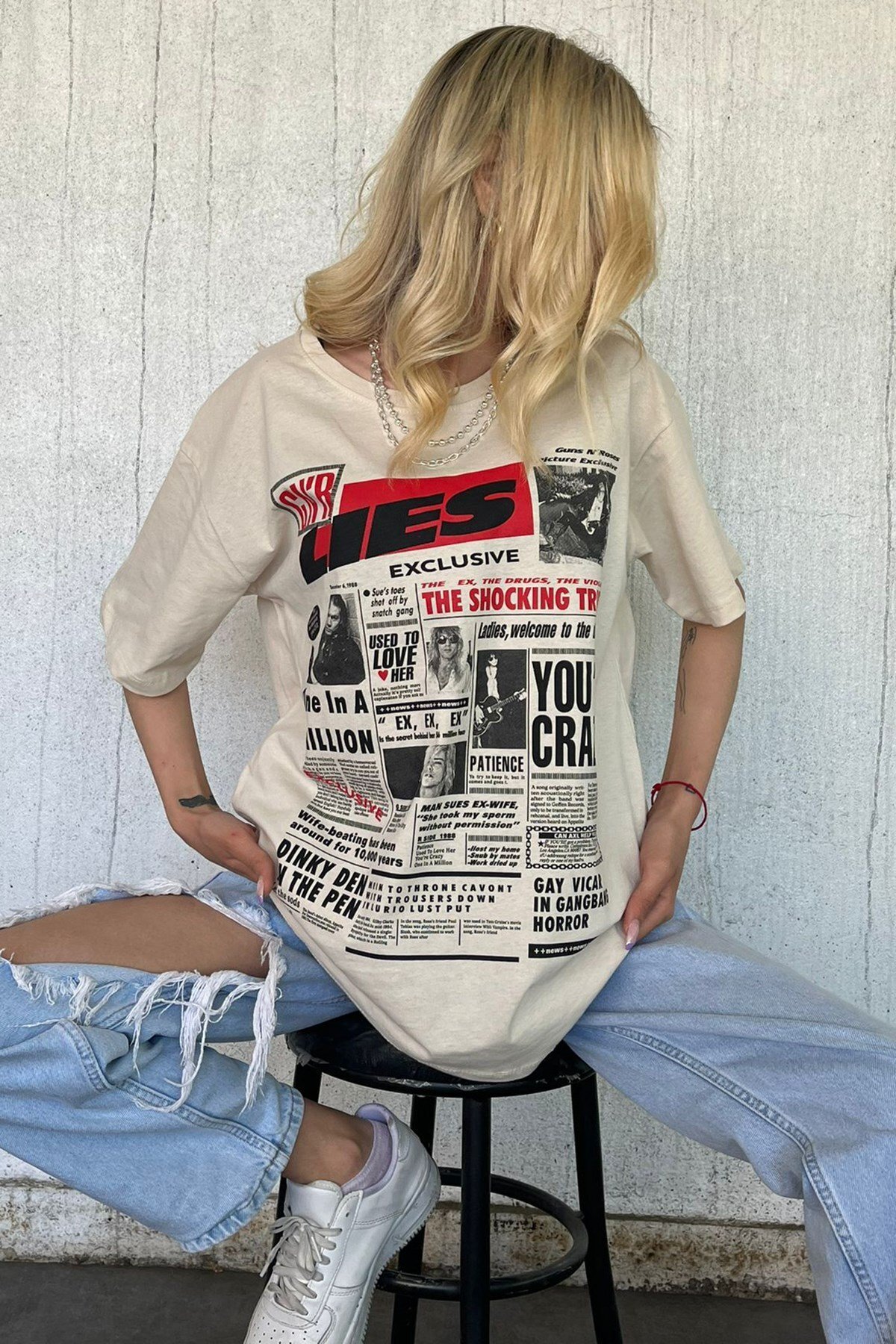Bej Arka Baskılı Over Fit Kadın Tişört Mg1506 Bej Arka Baskılı Over Fit Kadın Tişört Mg1506 MG1506 XL