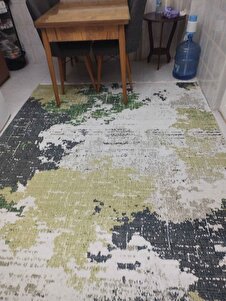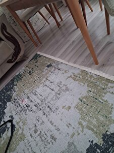 Modern Desenli Yeşil Yıkanabilir Saçaklı Kaymaz Taban Şönil Salon Halısı 7357 Modern Desenli Yeşil Yıkanabilir Saçaklı Kaymaz Taban Şönil Salon Halısı 7357 160 x 230