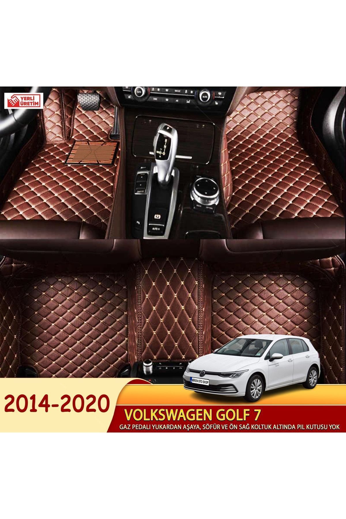 Volkswagen Golf7 2014-2020 Uyumlu 5d Havuzlu Suni Deri OTO PASPAS (Koyu kahve Renk)