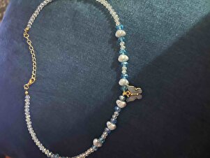 Mavi Kelebek Uçlu Barok Incili Kristal Boncuk Kolye Mavi Kelebek Uçlu Barok Incili Kristal Boncuk Kolye FAA3344 40 cm