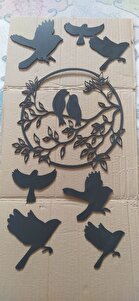 Modern Serçe+7 Kuş Ahşap Dekoratif Duvar Süsü Modern Serçe+7 Kuş Ahşap Dekoratif Duvar Süsü 46846856 50 x 110