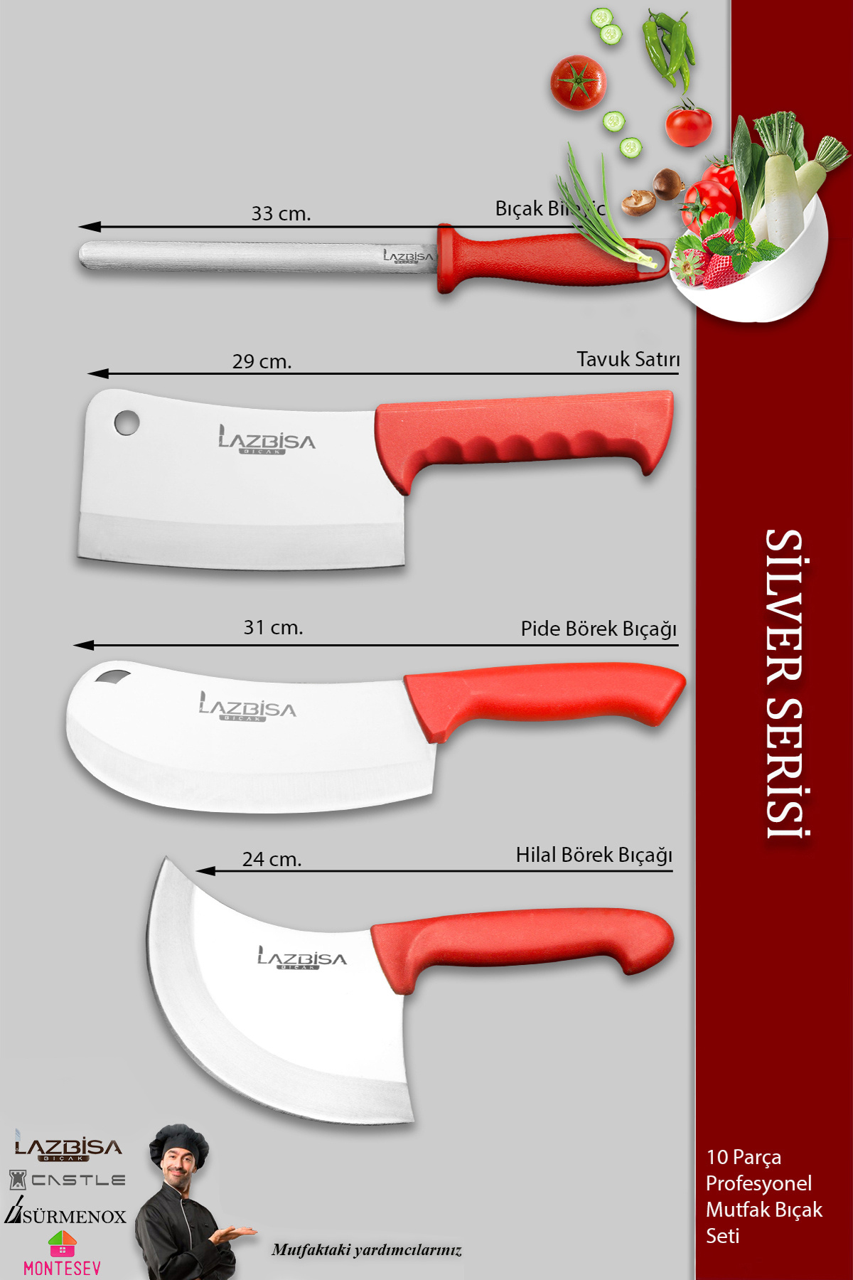 Silver Pro Serisi Mutfak Bıçak Seti 10 Parça Et Ekmek Sebze Soğan Börek Bıçağı Satırı (MFP-001) Silver Pro Serisi Mutfak Bıçak Seti 10 Parça Et Ekmek Sebze Soğan Börek Bıçağı Satırı (MFP-001) Set222 تک سایز
