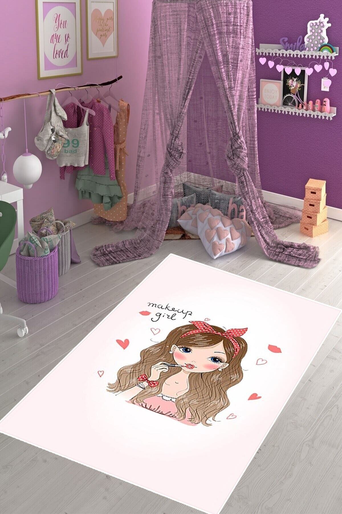 Çiçekli Genç Kız Desenli Dijital Baskılı Kaymaz Taban Yıkanabilir Mavi Genç Kız Odası Halısı Çiçekli Genç Kız Desenli Dijital Baskılı Kaymaz Taban Yıkanabilir Mavi Genç Kız Odası Halısı BFOGR1 160 x 230