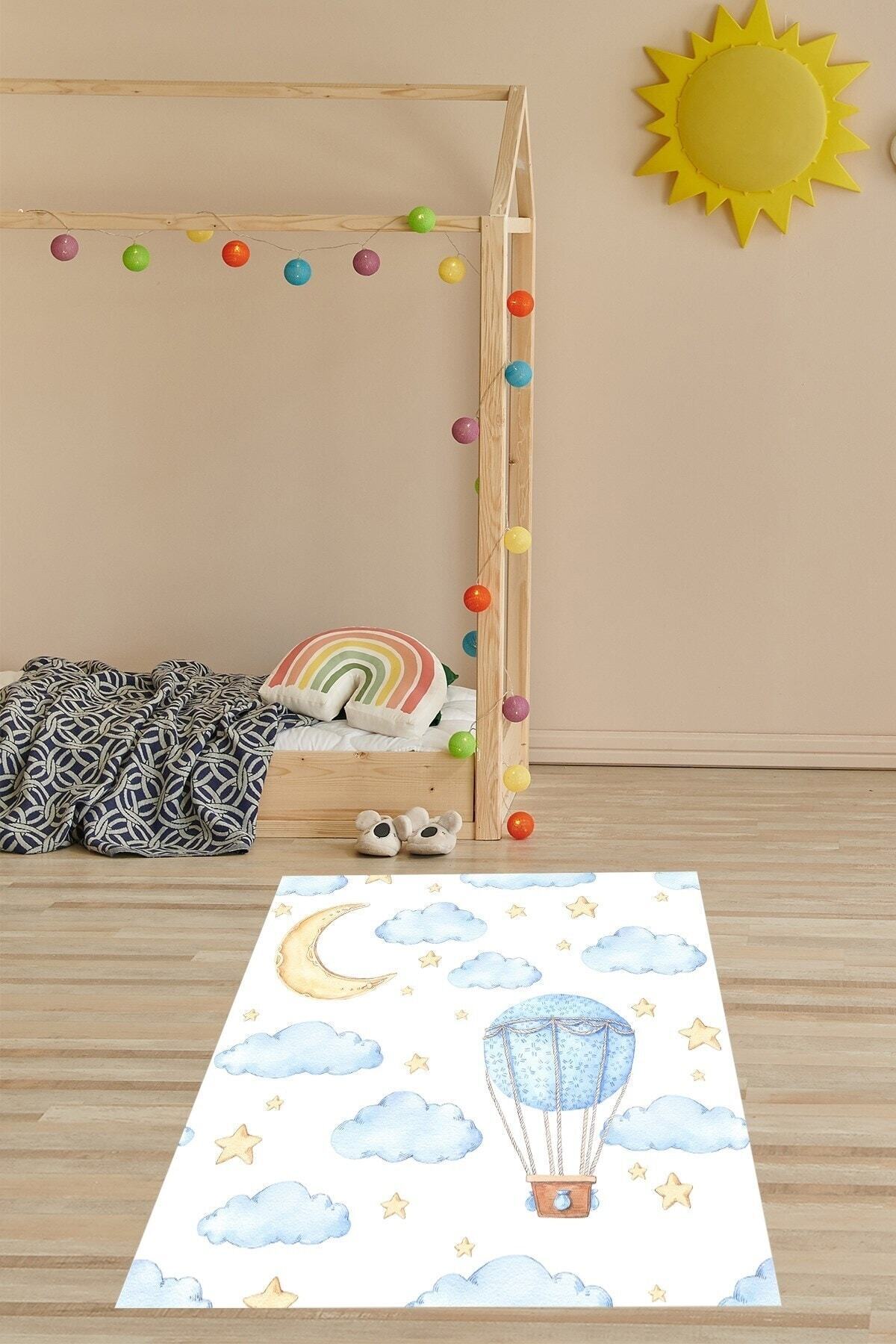 Uçan Balon Bulut Desenli Halı Dijital Baskı Yıkanabilir Kaymaz Taban Leke Tutmaz Çocuk Odası Halısı Uçan Balon Bulut Desenli Halı Dijital Baskı Yıkanabilir Kaymaz Taban Leke Tutmaz Çocuk Odası Halısı BFOBU1 160 x 230