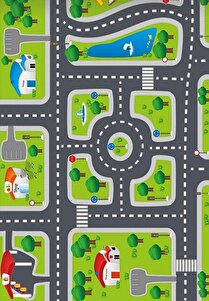 Araba Yollu Trafik Yolu Dijital Baskılı Kaymaz Taban Çocuk Odası Halısı Araba Yollu Trafik Yolu Dijital Baskılı Kaymaz Taban Çocuk Odası Halısı BFOTR2 160 x 230
