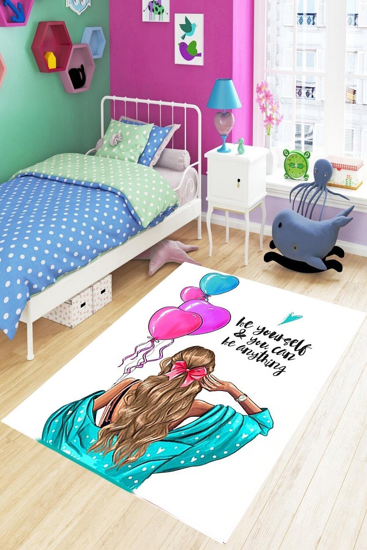 Genç Kız Balon Desenli Çiçekli Halı Dijital Baskı Yıkanabilir Kaymaz Taban Kız Çocuk Odası Halısı Genç Kız Balon Desenli Çiçekli Halı Dijital Baskı Yıkanabilir Kaymaz Taban Kız Çocuk Odası Halısı BFOGR3 160 x 230