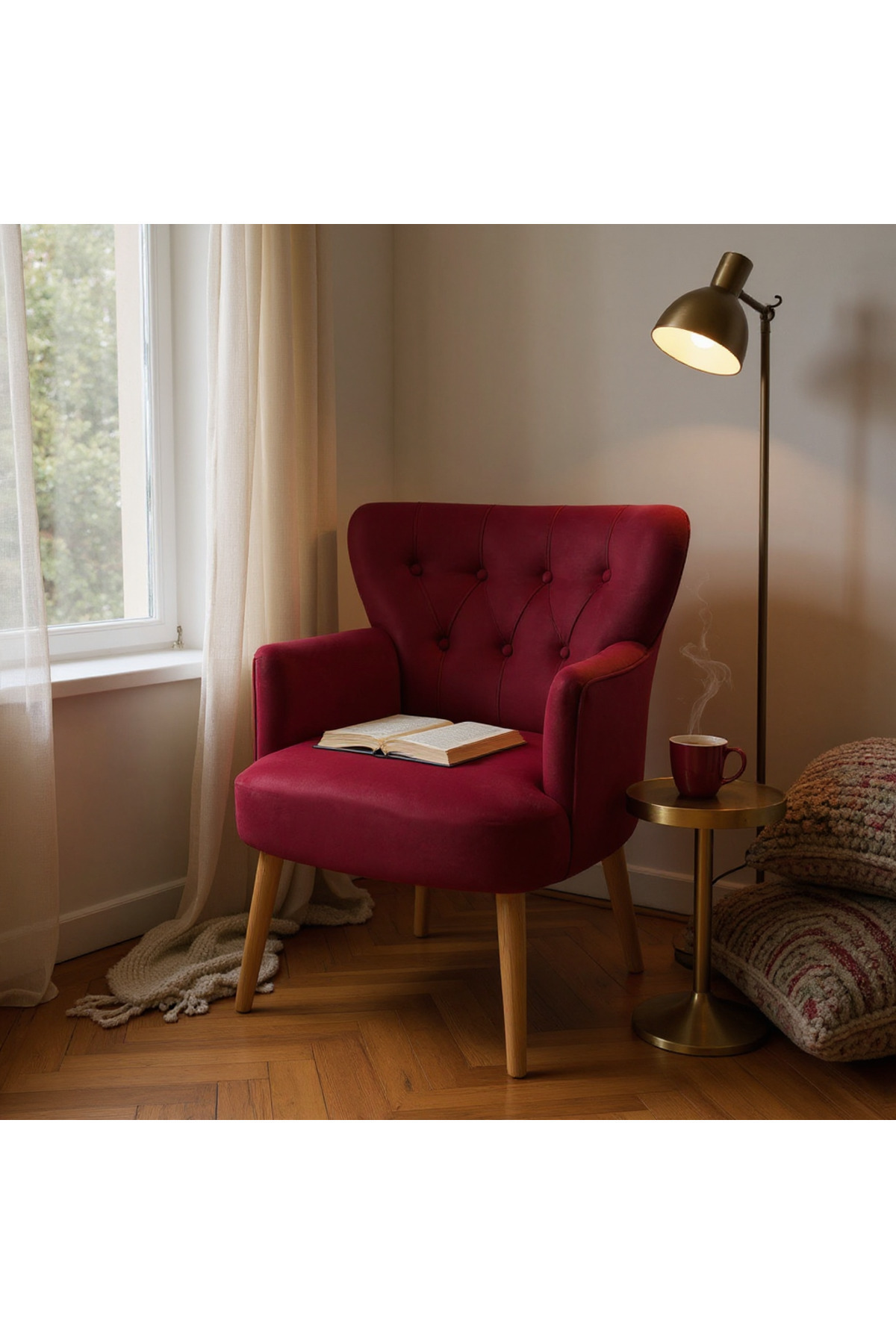 Berjer - Tekli Koltuk - Düz Renk Kumaş - Ahşap Ayak - Nubuk Kumaş - Bordo Berjer - Tekli Koltuk - Düz Renk Kumaş - Ahşap Ayak - Nubuk Kumaş - Bordo KolluBerjer3 تک سایز