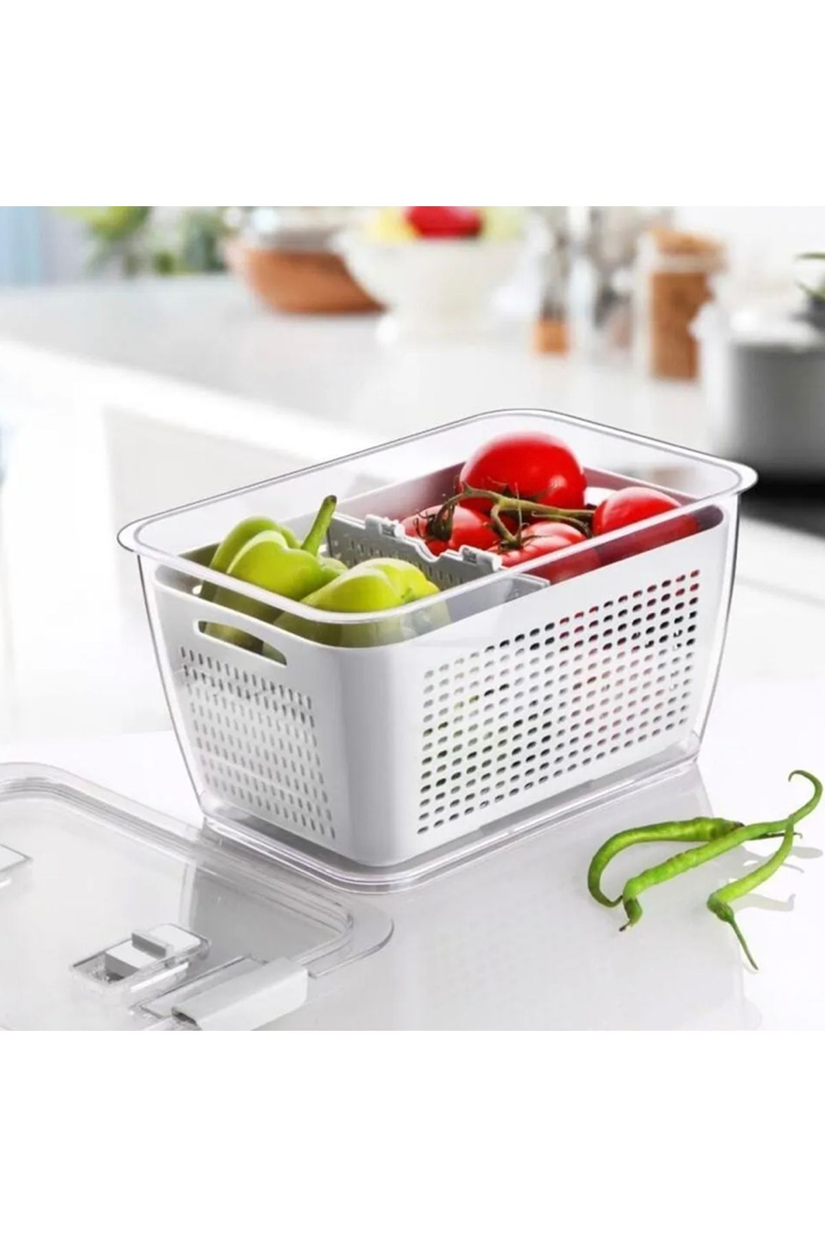 Süzgeçli Bölmeli Klimalı Buzdolabı Organizer Ve Saklama Kabı 2,5 Lt Beyaz Renk Süzgeçli Bölmeli Klimalı Buzdolabı Organizer Ve Saklama Kabı 2,5 Lt Beyaz Renk al1 تک سایز