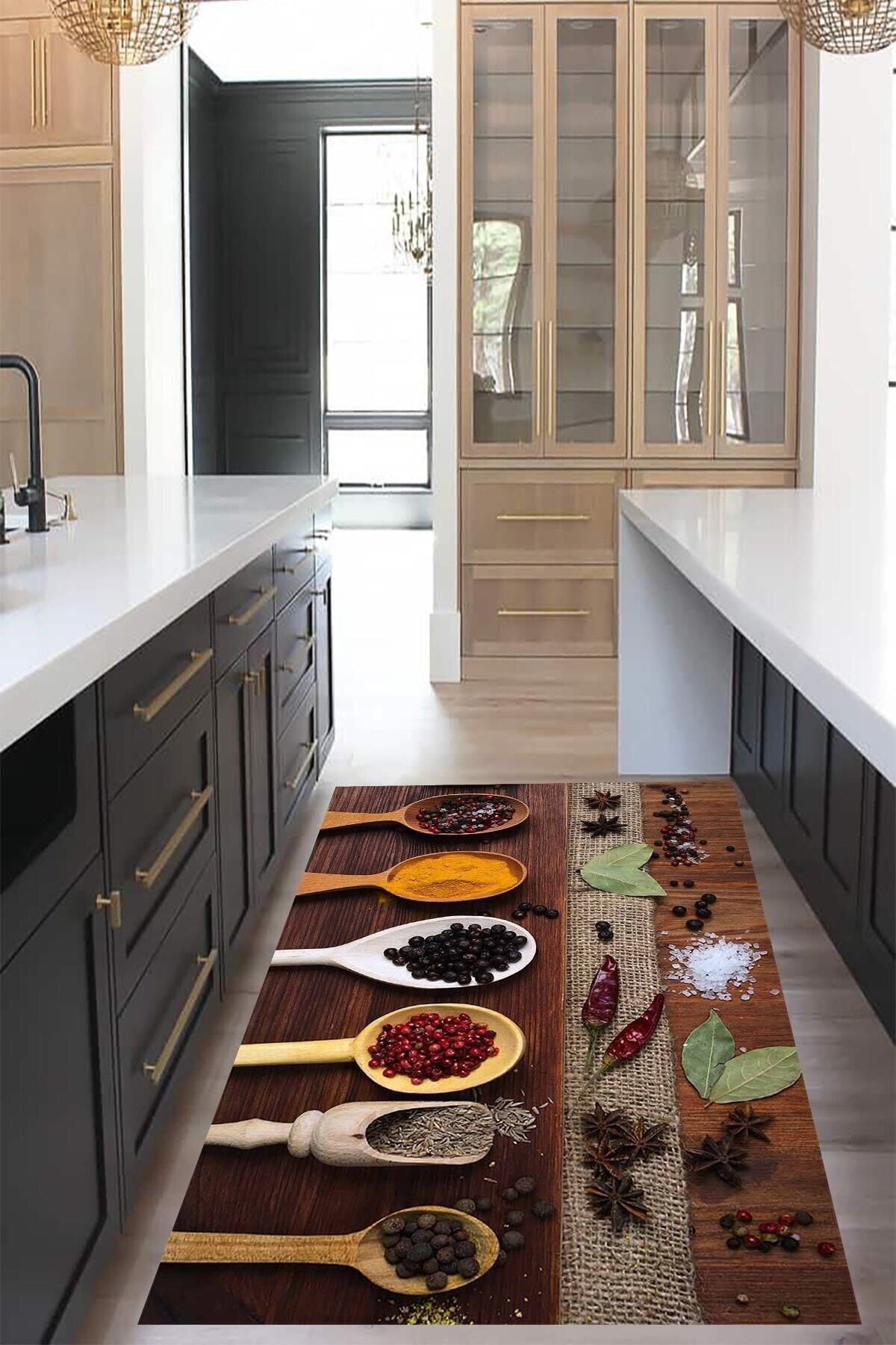 Baharat Desenli Dijital Baskılı Kaymaz Taban Yıkanabilir Leke Tutmaz Mutfak Halısı Baharat Desenli Dijital Baskılı Kaymaz Taban Yıkanabilir Leke Tutmaz Mutfak Halısı BFOKT8 160 x 230