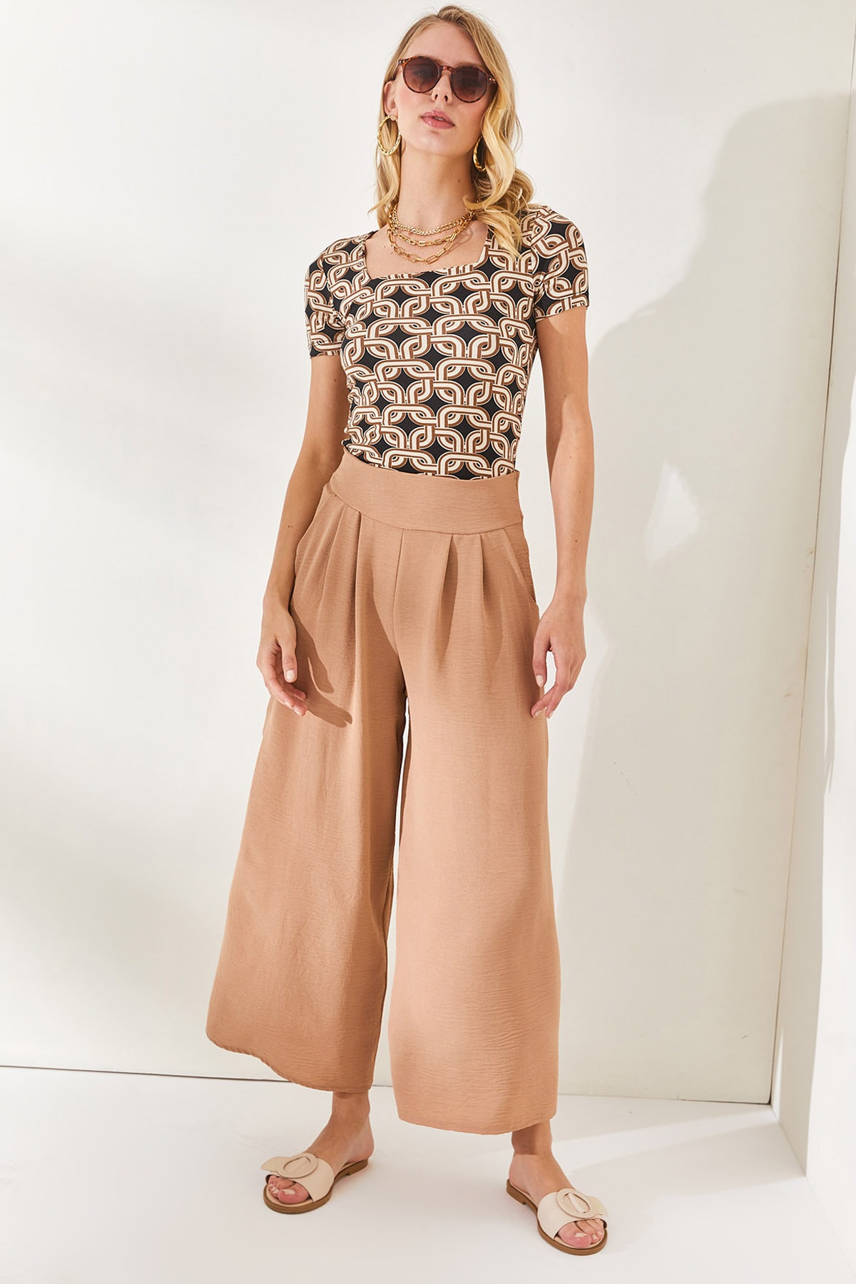 Kadın Ekru Kuşaklı Dokuma Viscon Palazzo Pantolon PNT-19000169 Kadın Ekru Kuşaklı Dokuma Viscon Palazzo Pantolon PNT-19000169 2XL