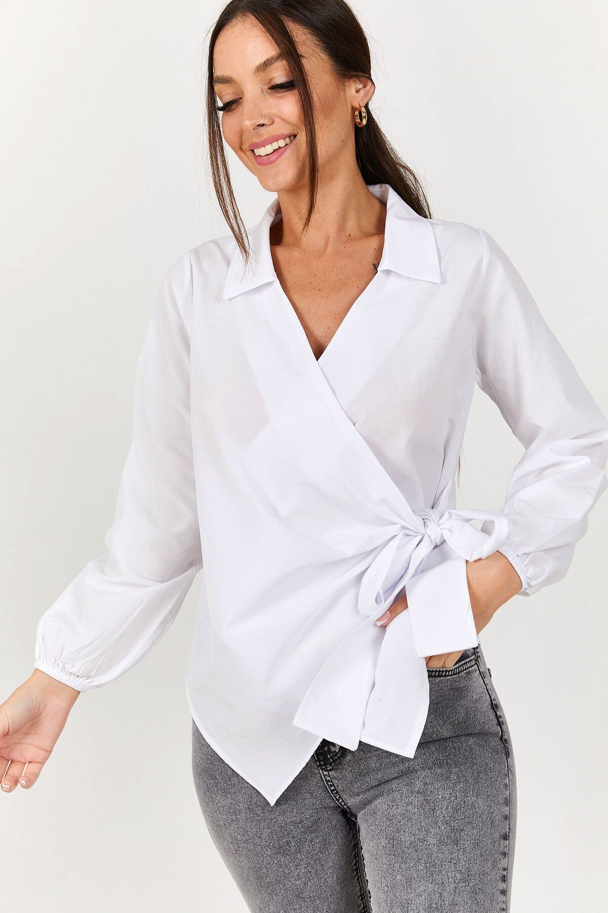 Kadın Beyaz Yakalı Kruvaze Bluz ARM-22Y024025 Kadın Beyaz Yakalı Kruvaze Bluz ARM-22Y024025 XL