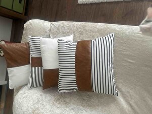 Özel Tasarım Çizgili Taba Deri 43x43 6'lı Premium Kırlent Kılıfı Özel Tasarım Çizgili Taba Deri 43x43 6'lı Premium Kırlent Kılıfı Taba2003