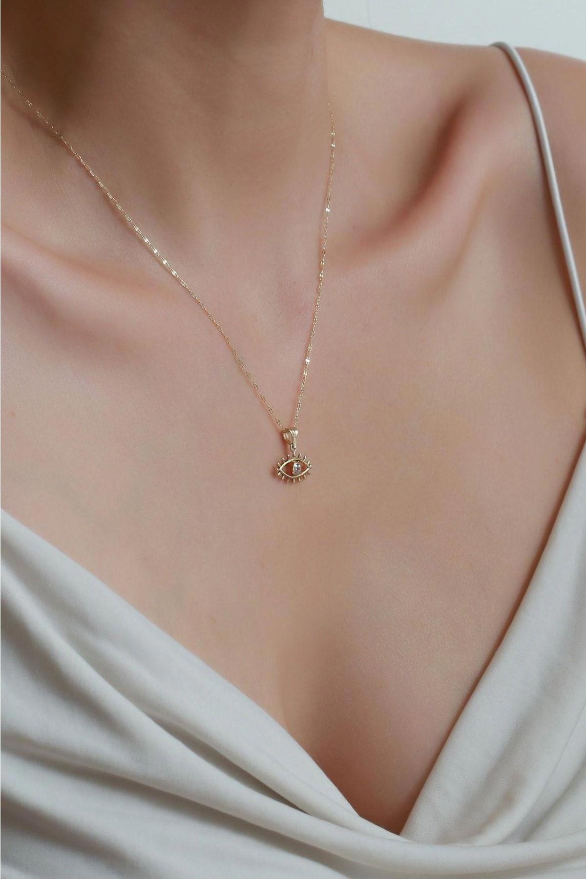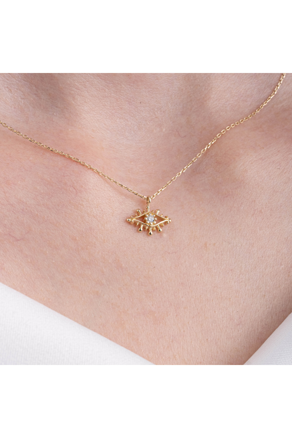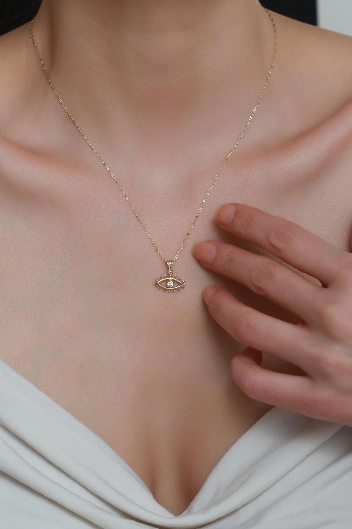 14 Ayar Altın Kirpikli Beyaz Göz Kolye 14 Ayar Altın Kirpikli Beyaz Göz Kolye KLYKRPKLBYZGZ 40 cm