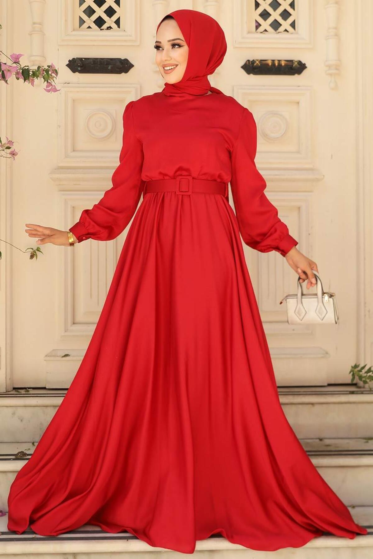 Boncuk İşlemeli Kırmızı Tesettür Abiye Elbise 22540K Boncuk İşlemeli Kırmızı Tesettür Abiye Elbise 22540K EGS-22540 46