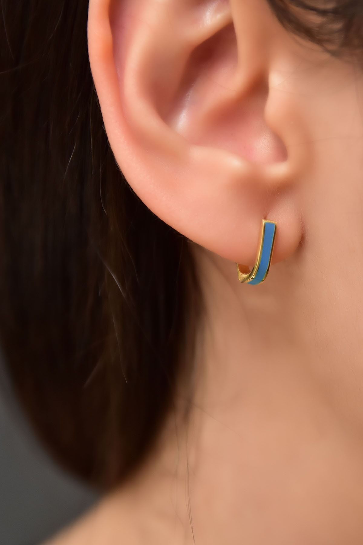 925 Ayar Gümüş Gold Kaplama Mavi Mineli Dikdörtgen Halka Küpe 925 Ayar Gümüş Gold Kaplama Mavi Mineli Dikdörtgen Halka Küpe UVPTS300381 تک سایز