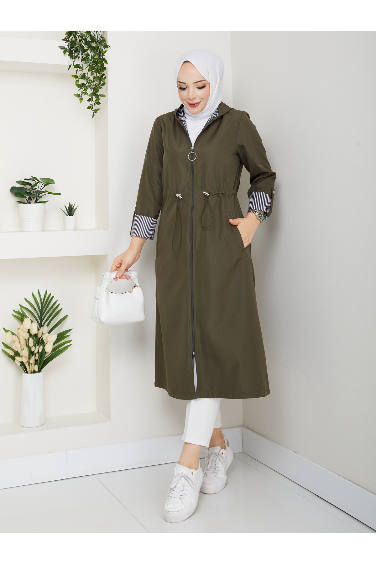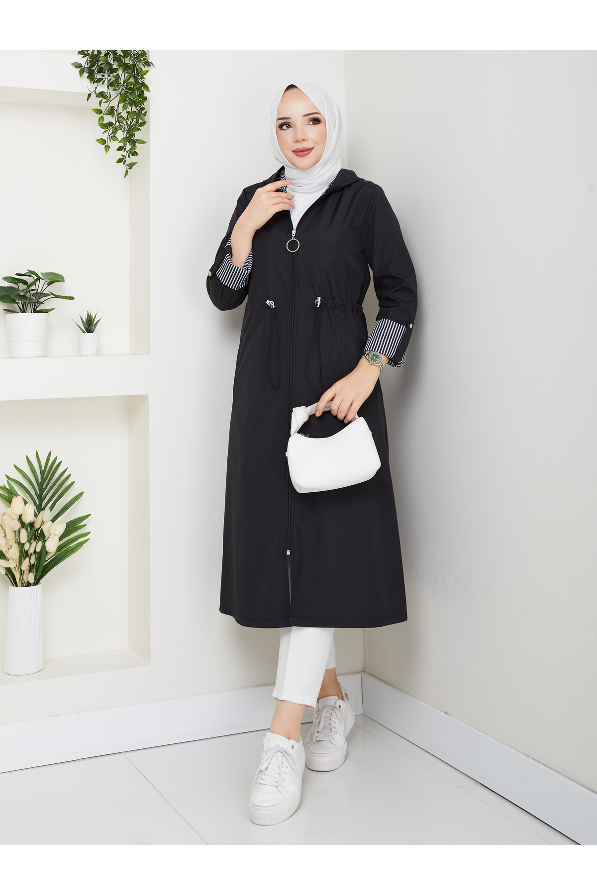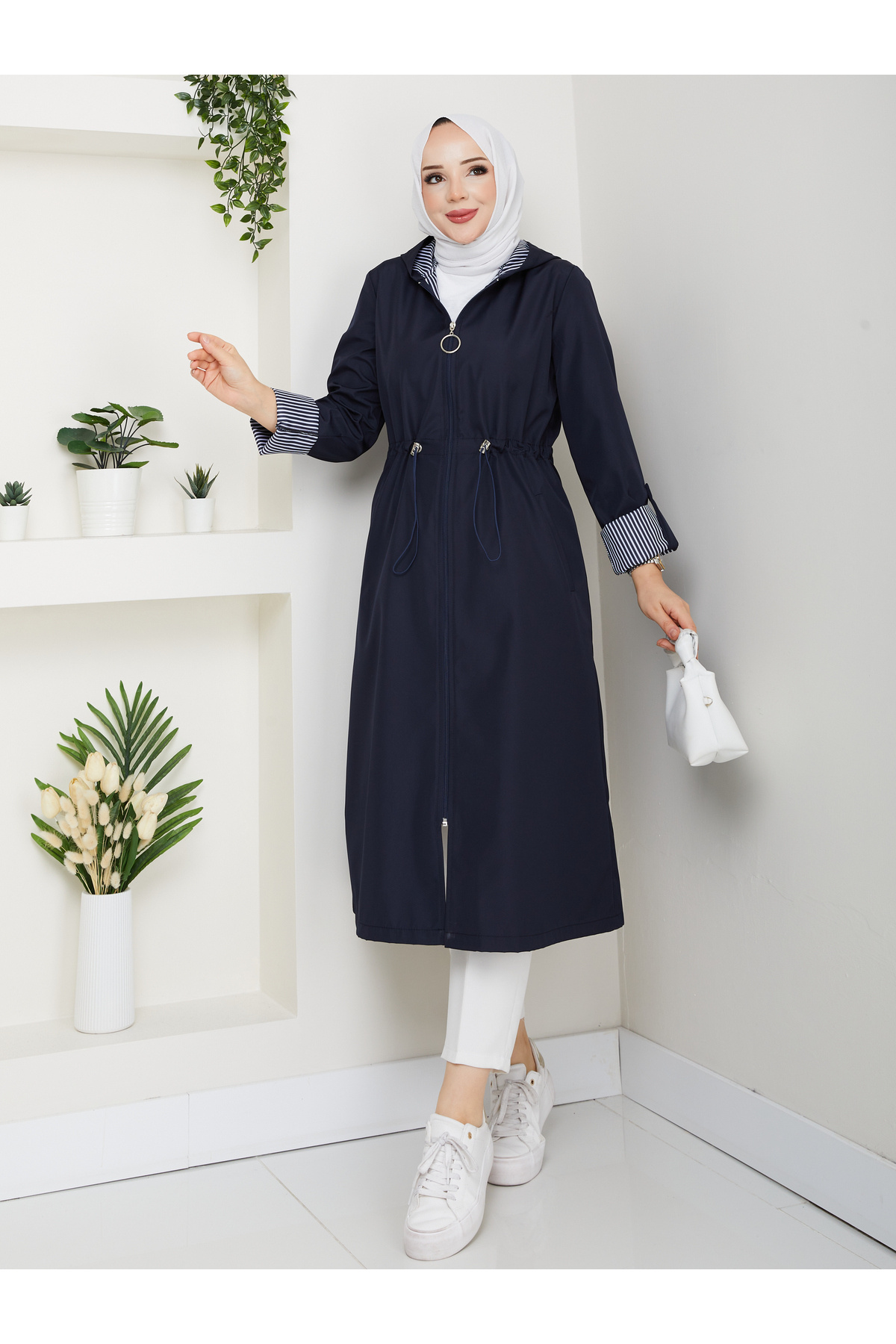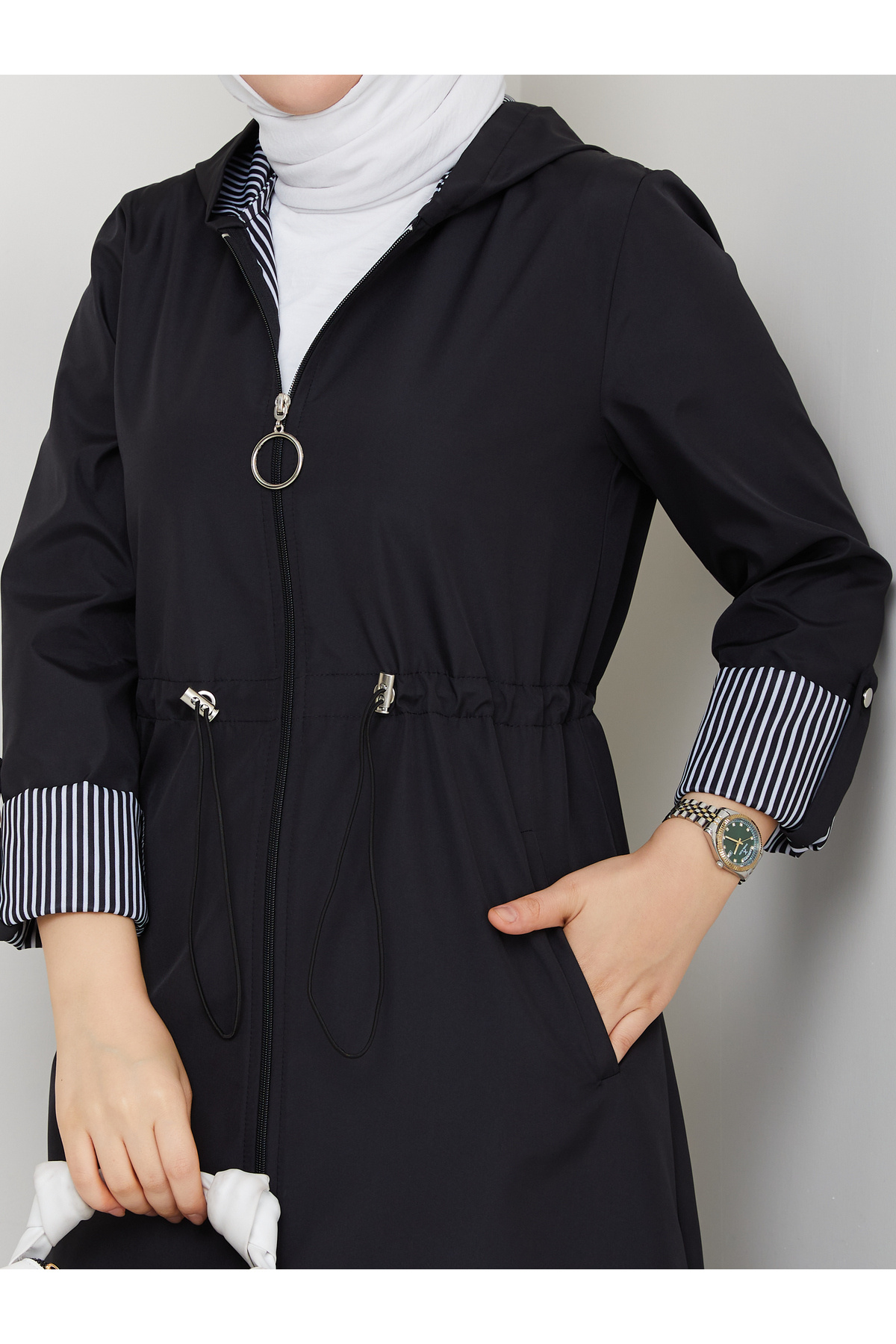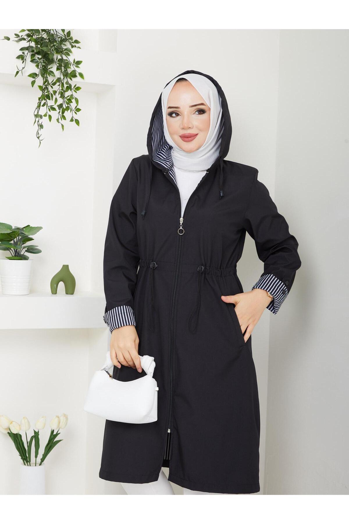 Çizgili Bondit Kumaş Su Geçirmez Trençkot 120 cm Rc5010 Çizgili Bondit Kumaş Su Geçirmez Trençkot 120 cm Rc5010 5010120 54