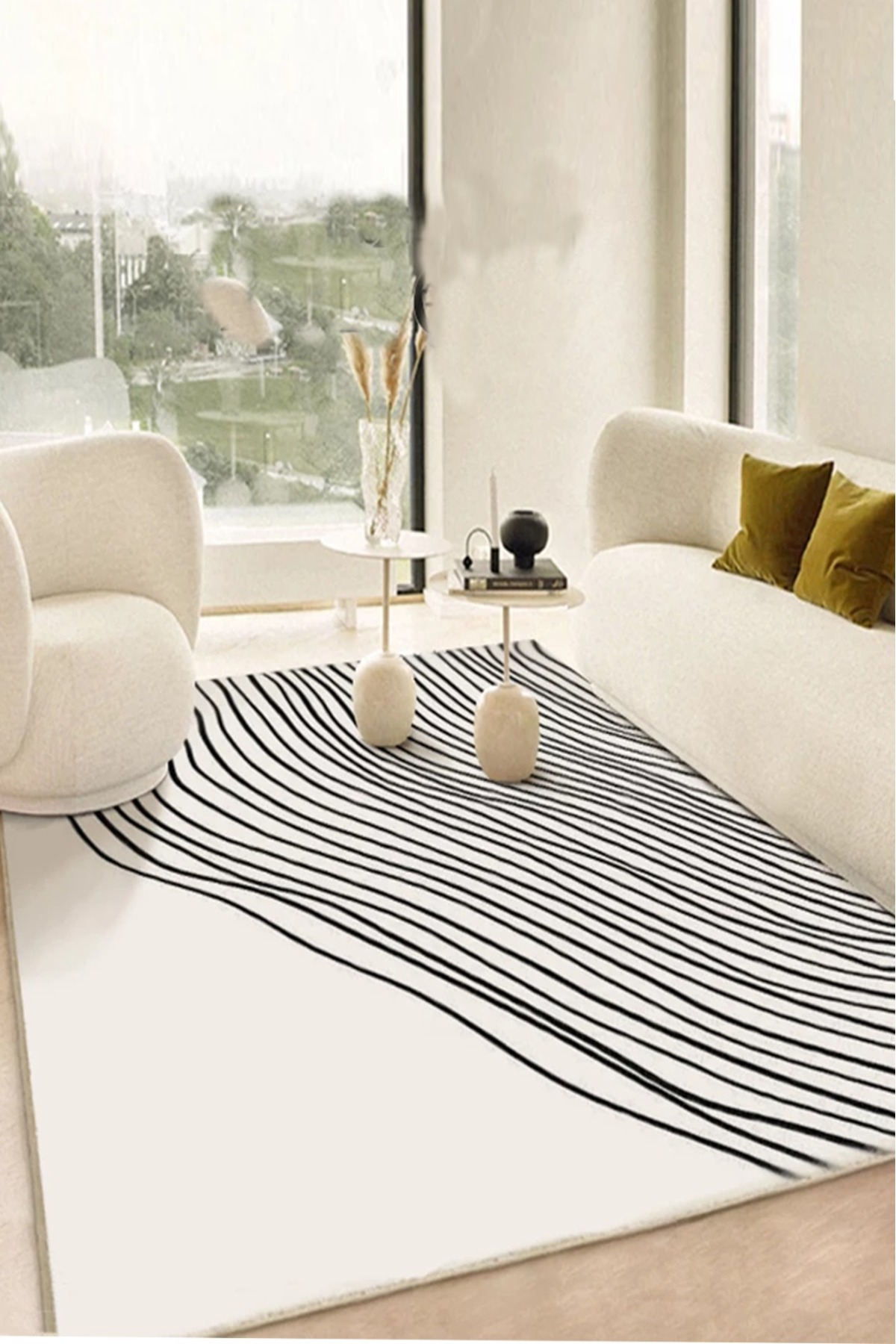 Dijital Baskılı Kaymaz, Yıkanabilir Siyah Beyaz Çizgili Modern Salon Mutfak Halı-yolluk-d1297 Dijital Baskılı Kaymaz, Yıkanabilir Siyah Beyaz Çizgili Modern Salon Mutfak Halı-yolluk-d1297 DC-1297 160 x 230