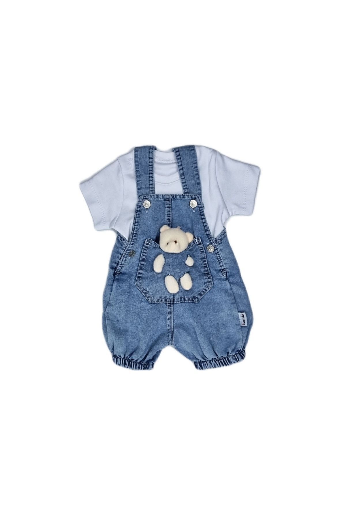 Unisex Kot Salopet Beyaz T-shirt 2'li Takım Ayıcıklı Unisex Kot Salopet Beyaz T-shirt 2'li Takım Ayıcıklı 348012 18-24 AY