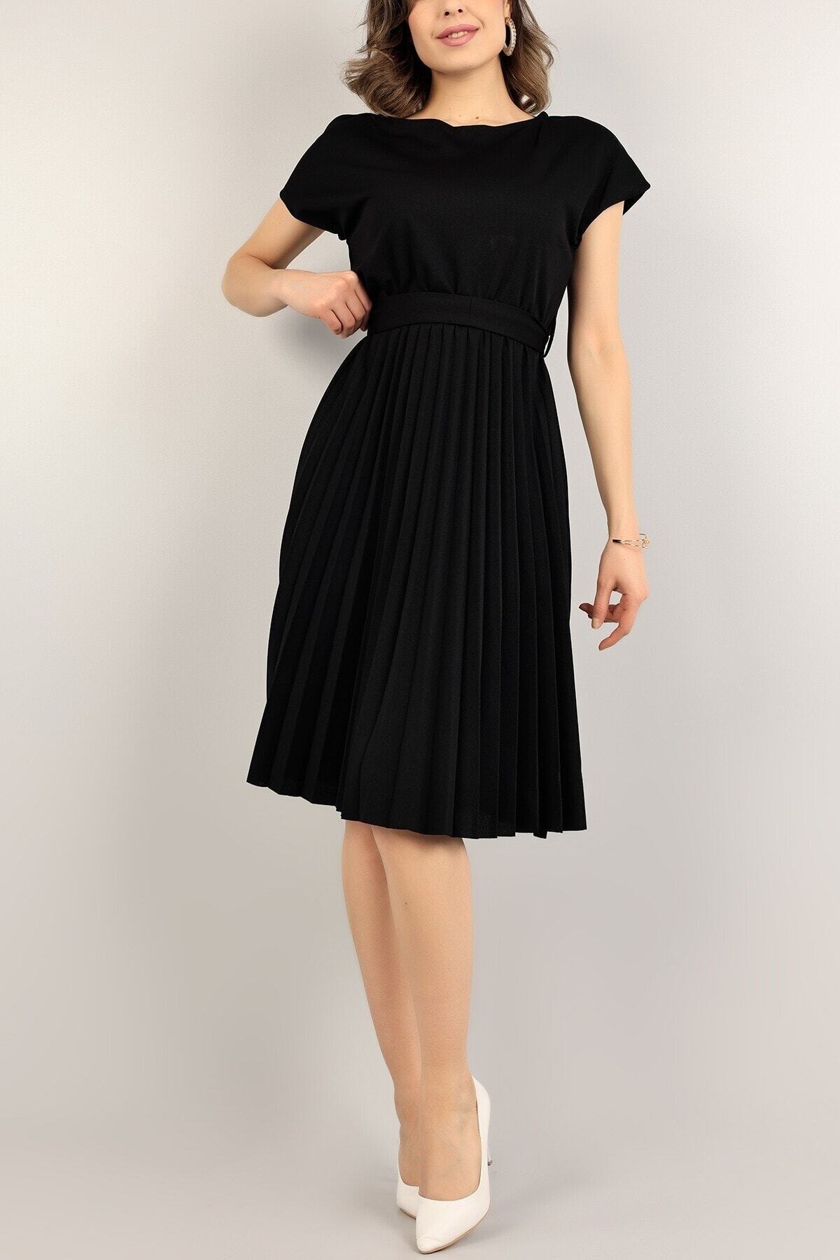 Kadın Siyah Esnek Krep Kumaş Piliseli Kuşak Detaylı Kısa Kollu Midi Boy Elbise Emr-120 Kadın Siyah Esnek Krep Kumaş Piliseli Kuşak Detaylı Kısa Kollu Midi Boy Elbise Emr-120 4S1B-EMR-120 XL