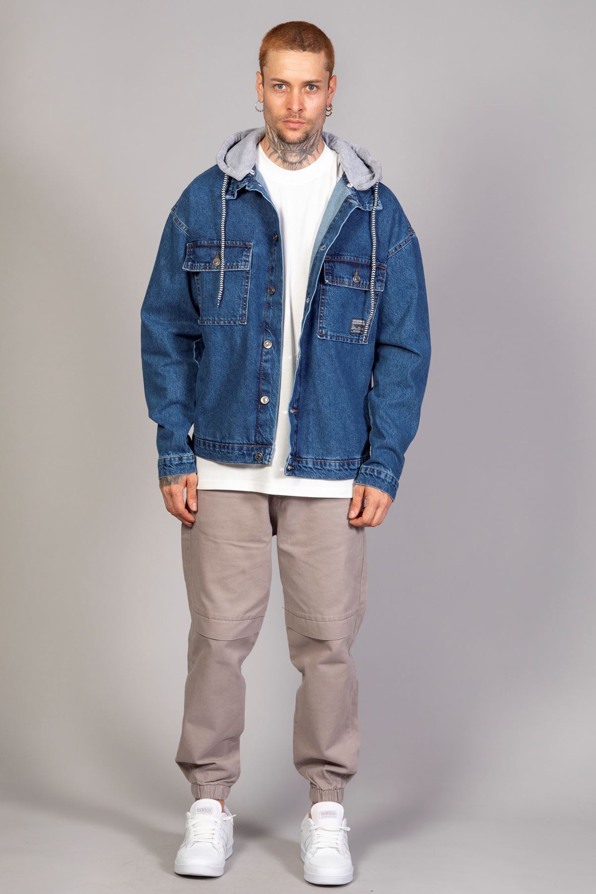 Erkek Mavi Kapüşonlu Çıkarılabilir Kapüşonlu Oversize Kot Ceket Erkek Mavi Kapüşonlu Çıkarılabilir Kapüşonlu Oversize Kot Ceket A5057 XL
